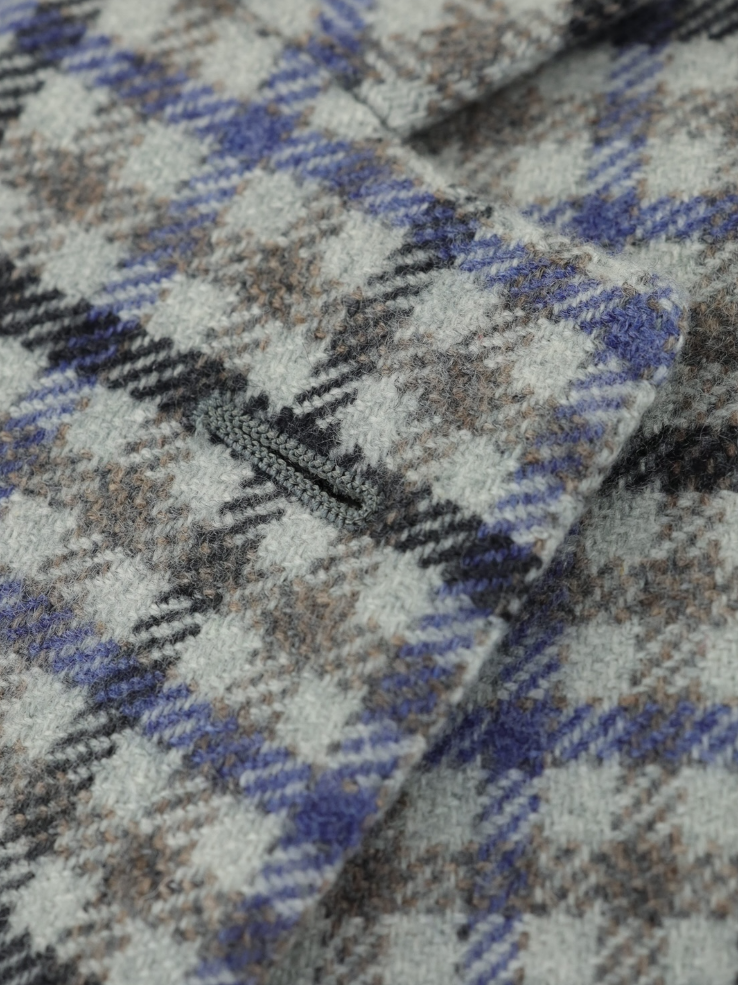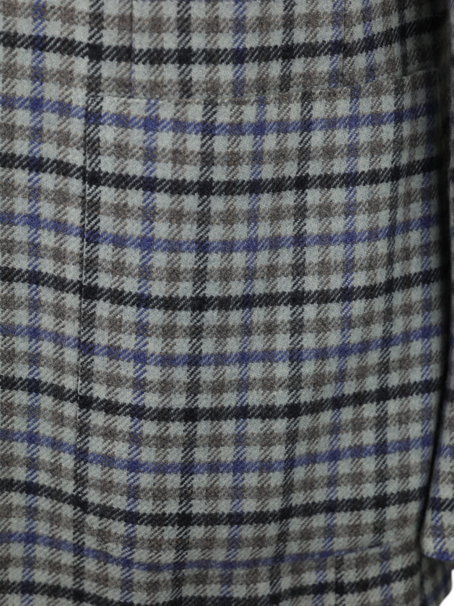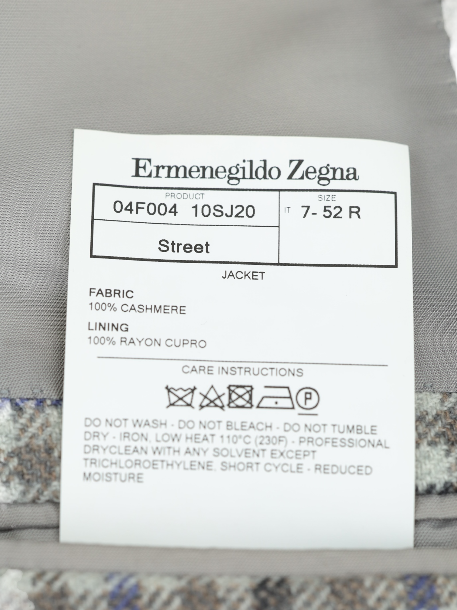 Ermenegildo Zegna Greige & Denim Blue Pure Cashmere Gingham Check Jacket
