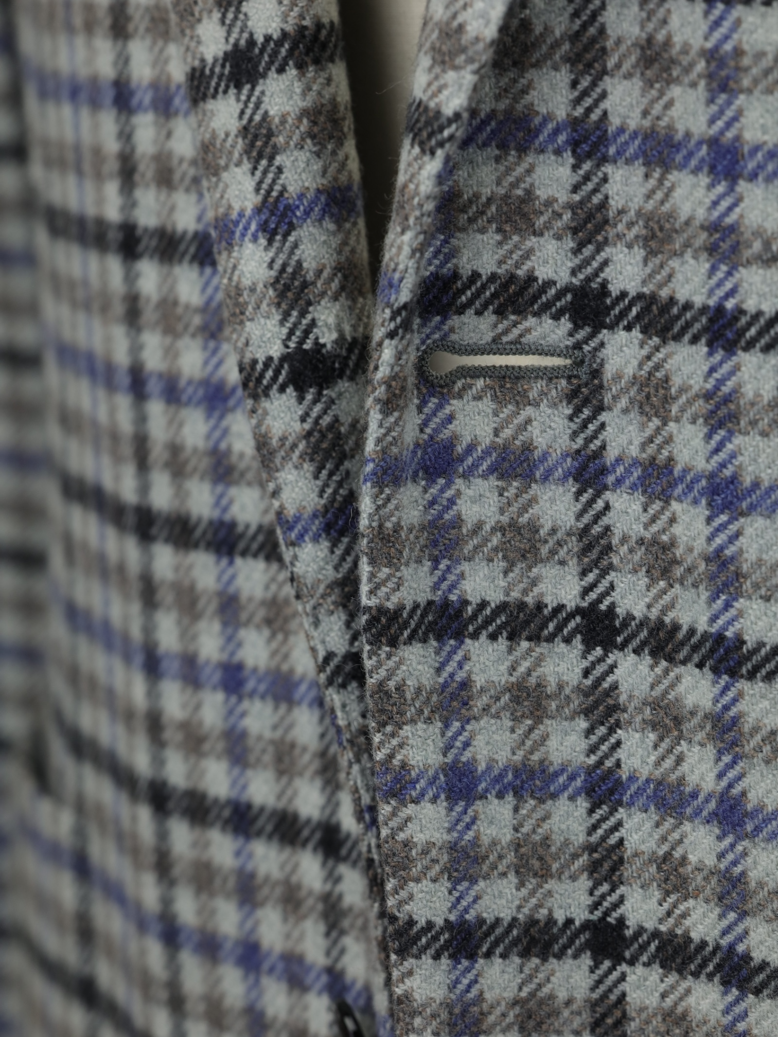 Also known as ‘barchetta’ Italian for ‘little boat’, it is so named because this pocket floats on the chest gently angled upward, just like the bow of a sailboat. These pockets echo the lively roll of a lapel that carries the spring of canvas and natural wool, unlike machine-made chest pockets that have a more stamped-out, rectangular shape and less life.