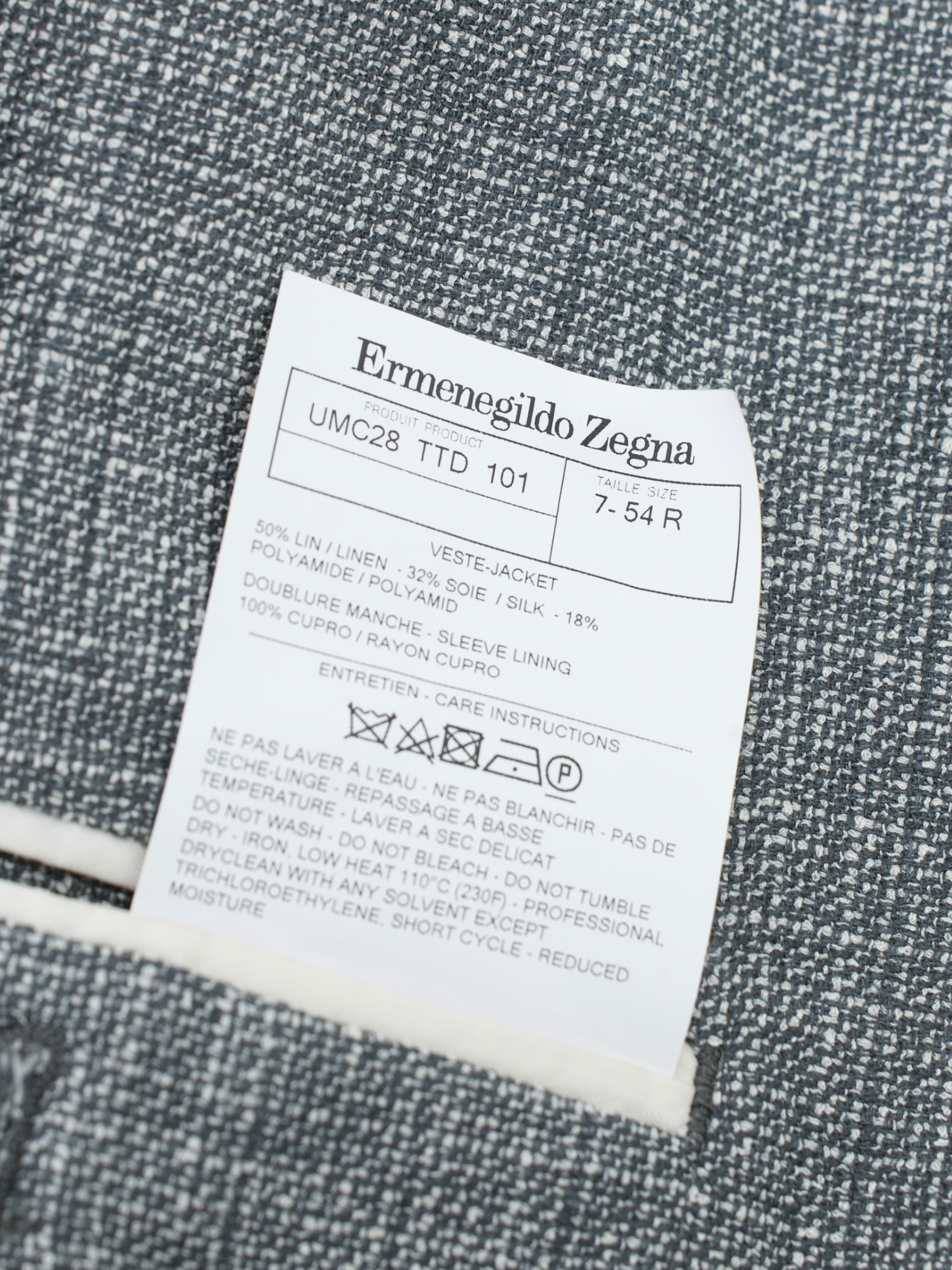 Ermenegildo Zegna Grey Linen, Silk & Stretch Micro-Pattern Jacket
