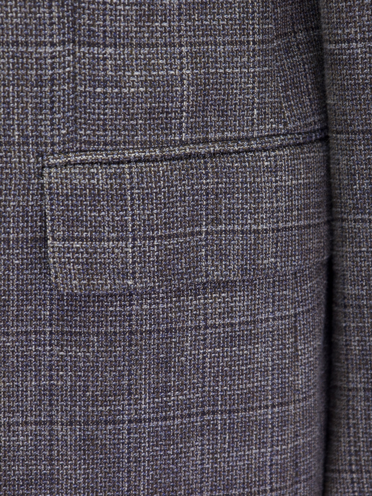 Also known as ‘barchetta’ Italian for ‘little boat’, it is so named because this pocket floats on the chest gently angled upward, just like the bow of a sailboat. These pockets echo the lively roll of a lapel that carries the spring of canvas and natural wool, unlike machine-made chest pockets that have a more stamped-out, rectangular shape and less life.