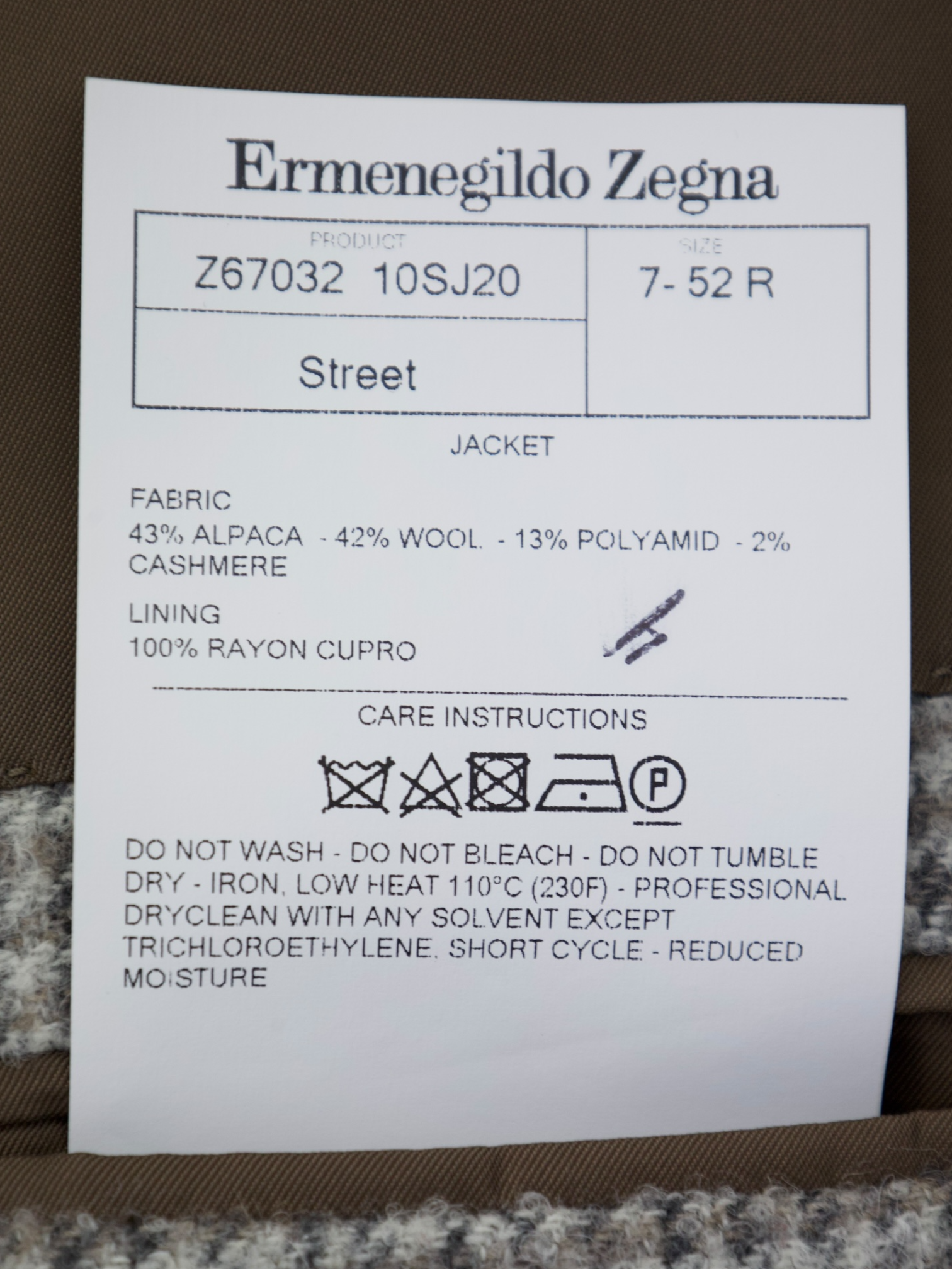 Ermenegildo Zegna Light Grey & Taupe Alpaca, Wool, Polyamide & Cashmere Houndstooth Jacket