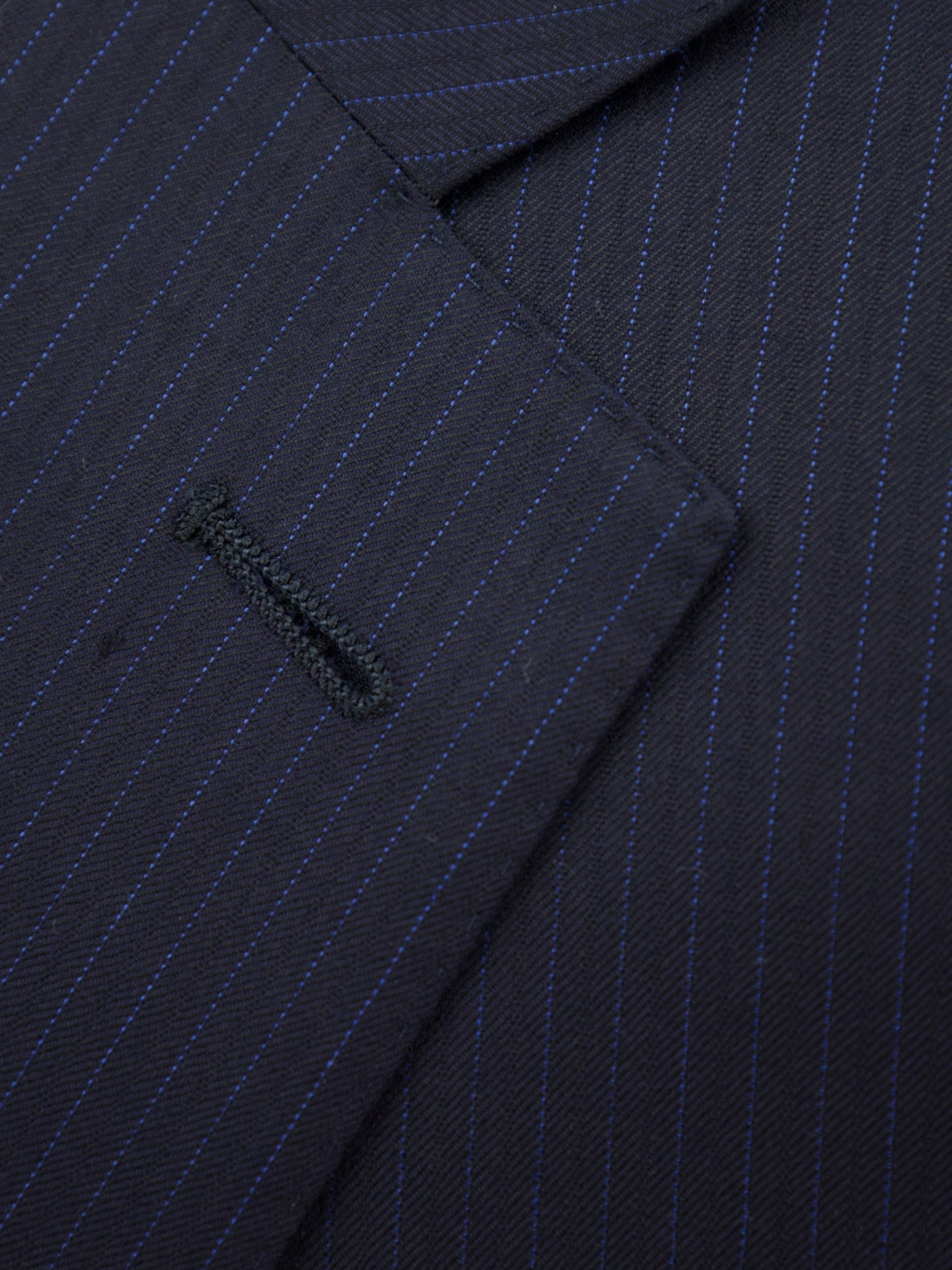 Handmade buttonholes are made using a chain of knotted loops called purl stitches that make them strong and visually distinctive. It takes about five seconds to sew a regular buttonhole with a machine – a single handmade buttonhole takes about 10 minutes to sew.