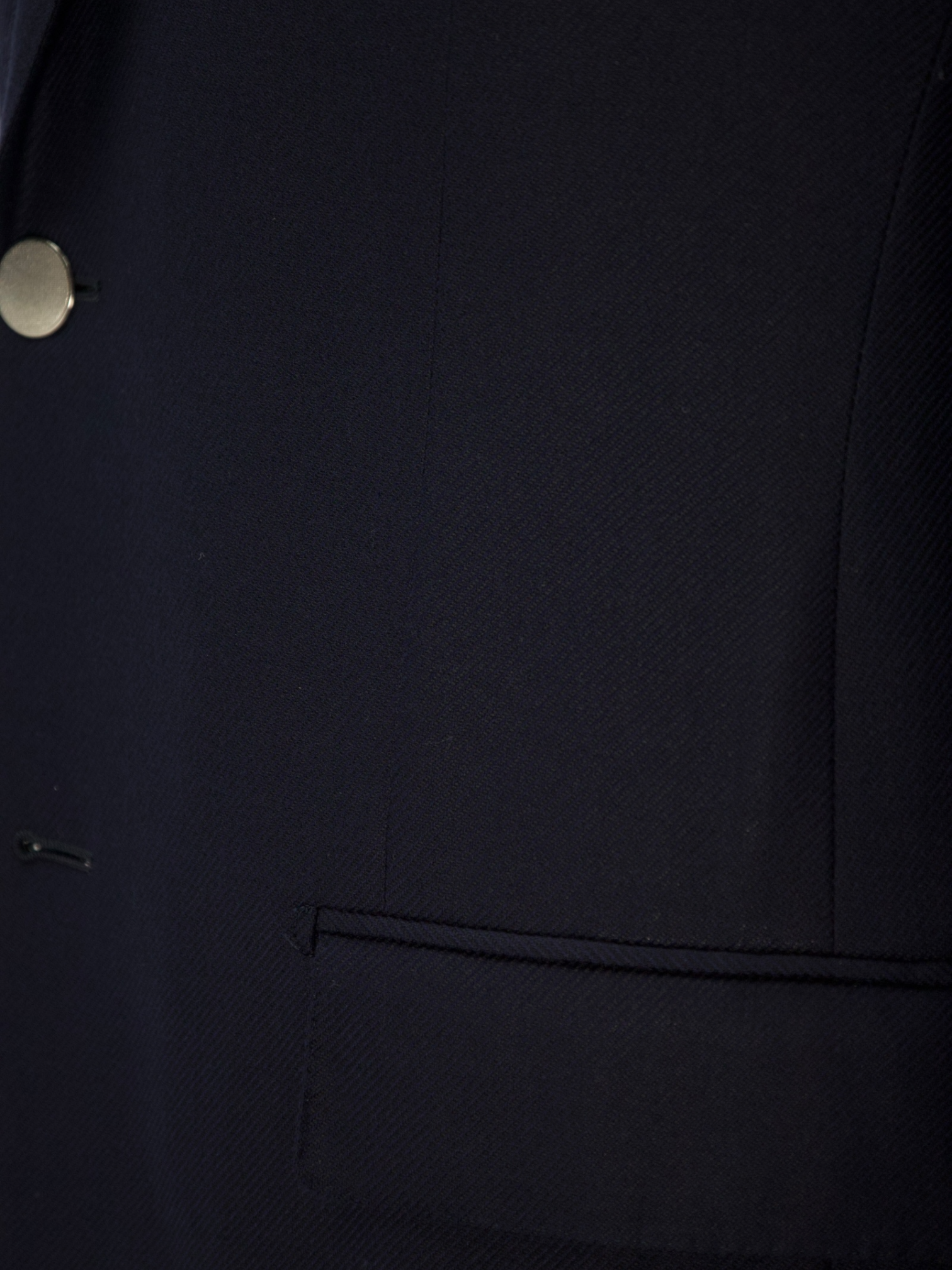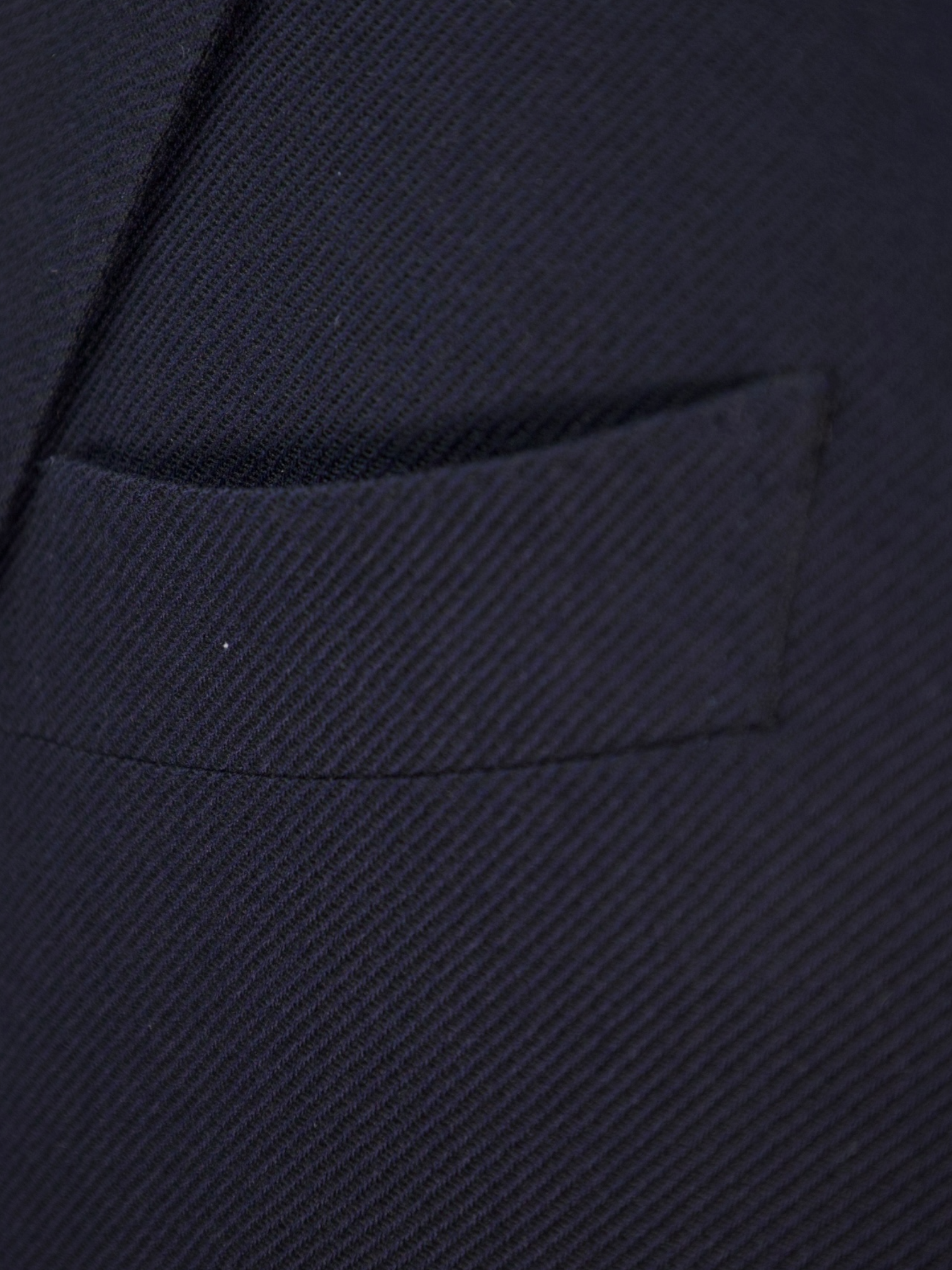 Also known as ‘barchetta’ Italian for ‘little boat’, it is so named because this pocket floats on the chest gently angled upward, just like the bow of a sailboat. These pockets echo the lively roll of a lapel that carries the spring of canvas and natural wool, unlike machine-made chest pockets that have a more stamped-out, rectangular shape and less life.