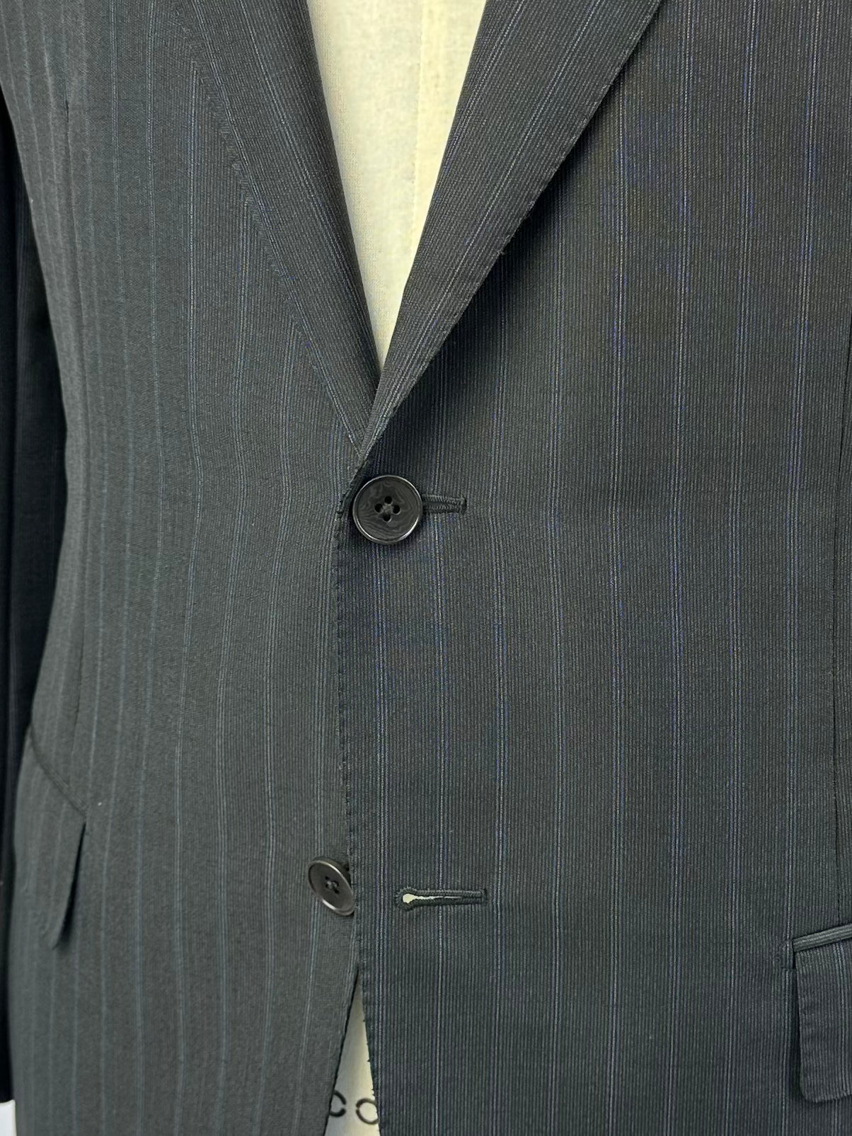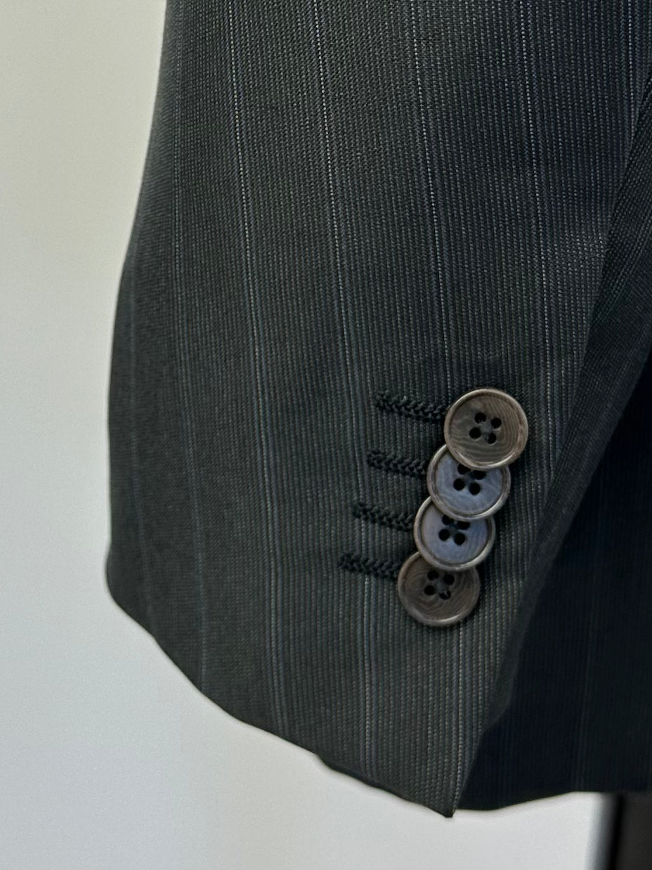 The tailors adds two darts - think of them as pinched seams - to ensure the jacket’s body achieves a slim silhouette. The process, called mezzo punto riprese, is done entirely by hand.