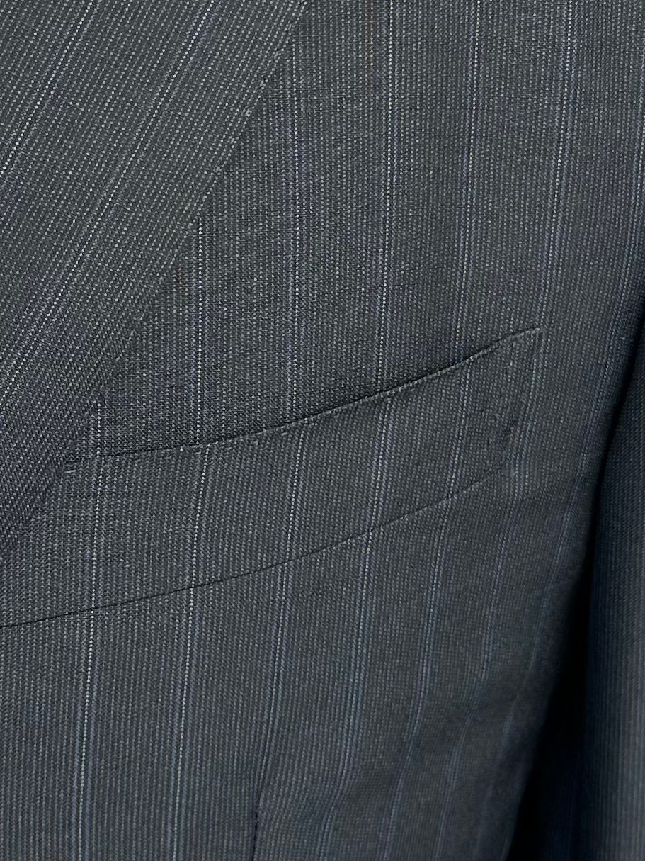 Also known as ‘barchetta’ Italian for ‘little boat’, it is so named because this pocket floats on the chest gently angled upward, just like the bow of a sailboat. These pockets echo the lively roll of a lapel that carries the spring of canvas and natural wool, unlike machine-made chest pockets that have a more stamped-out, rectangular shape and less life.