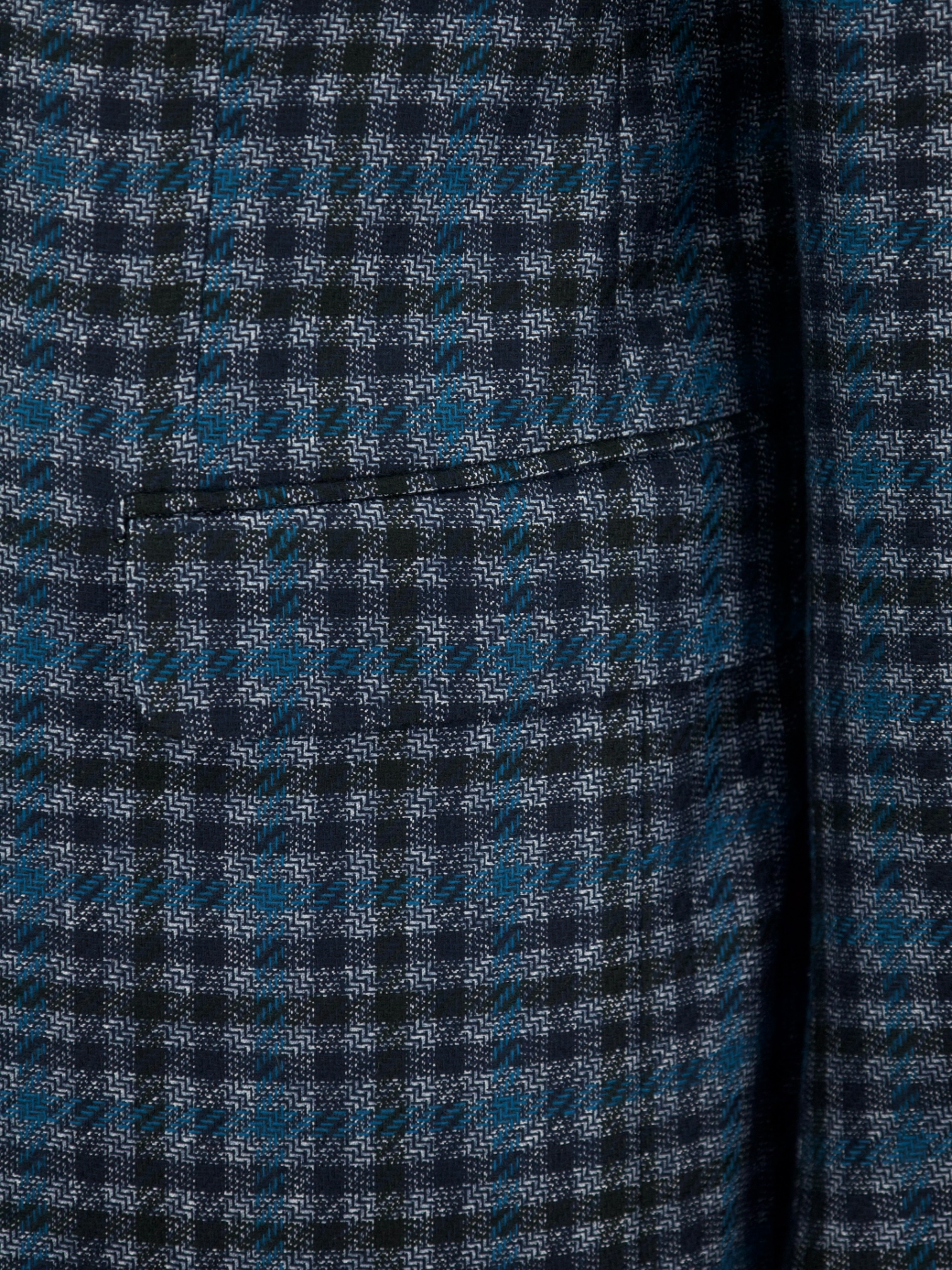 Discover the Ermenegildo Zegna navy and turquoise gingham check jacket, a refined take on classic patterning with a modern color twist. Crafted from an exquisite blend of silk and cashmere, the fabric offers an ultra-soft touch with a smooth, lightweight drape. The deep navy base is complemented by subtle turquoise accents in a gingham check pattern, adding a touch of vibrancy while maintaining an elegant balance. Designed with notch lapels, flap pockets, and a tailored silhouette, this jacket is a versatile choice for both business and elevated casual settings.