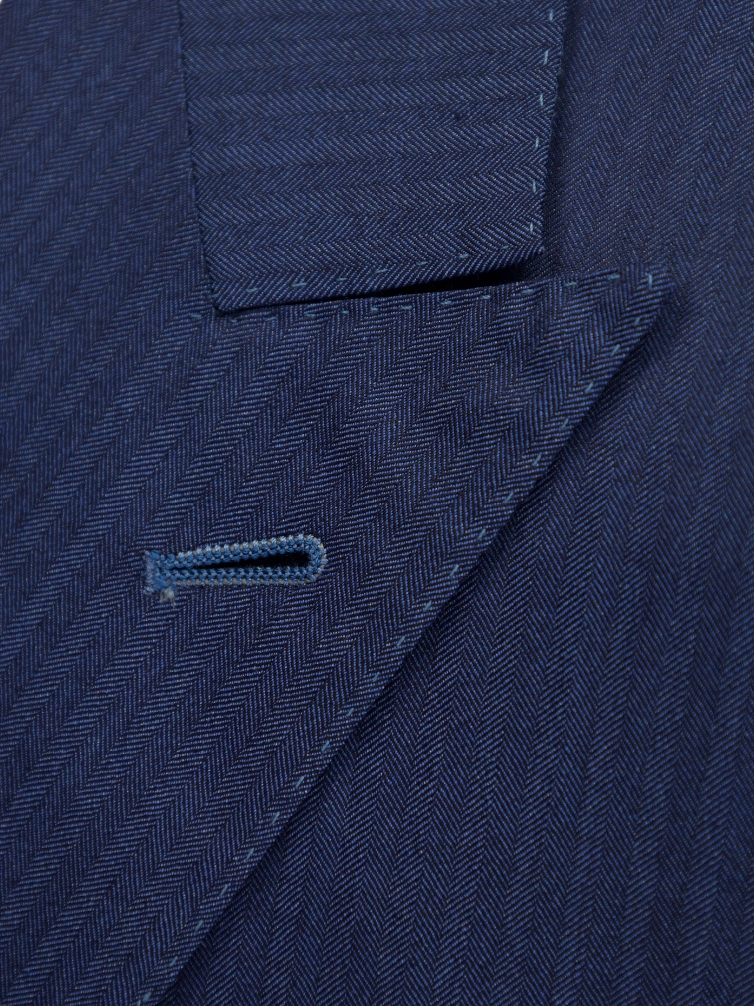 The tailors adds two darts - think of them as pinched seams - to ensure the jacket’s body achieves a slim silhouette. The process, called mezzo punto riprese, is done entirely by hand.