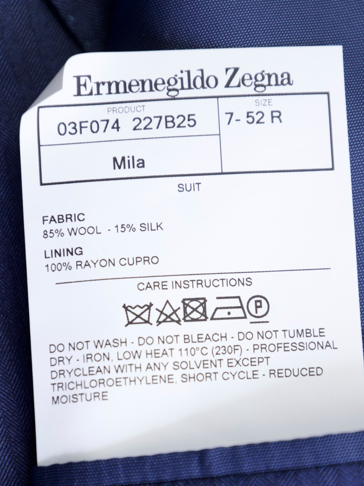 Ermenegildo Zegna's commitment to superior craftsmanship is evident in every detail of this suit. The Trofeo™ 600 fabric combines superfine wool with pure silk 600 filament, creating a material that is naturally luminous and incredibly lightweight, with a sumptuous hand. Hand-finished elements, such as precisely sewn buttonholes and meticulously aligned patterns, showcase the brand's artisanal expertise. Tailored in Italy, this suit embodies Zegna's philosophy of merging traditional tailoring with innovative materials, making it a versatile addition to the modern gentleman's wardrobe. Whether for business engagements or formal occasions, the Petrol Blue Trofeo™ 600 Wool & Silk Herringbone Suit exudes confidence and sophistication.