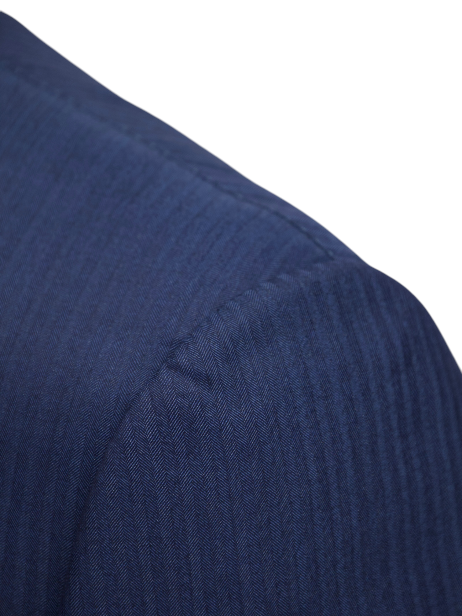 Also known as ‘barchetta’ Italian for ‘little boat’, it is so named because this pocket floats on the chest gently angled upward, just like the bow of a sailboat. These pockets echo the lively roll of a lapel that carries the spring of canvas and natural wool, unlike machine-made chest pockets that have a more stamped-out, rectangular shape and less life.