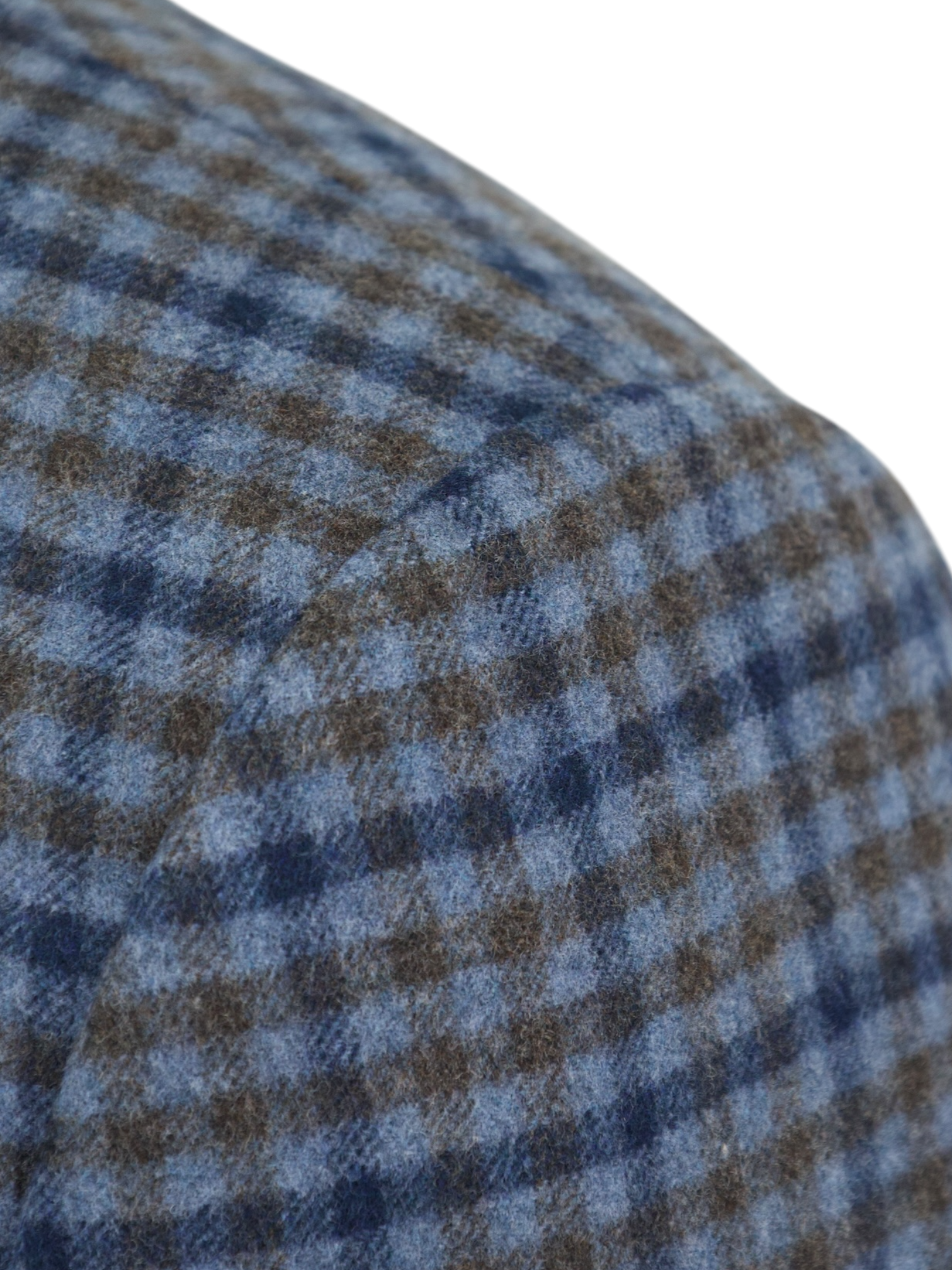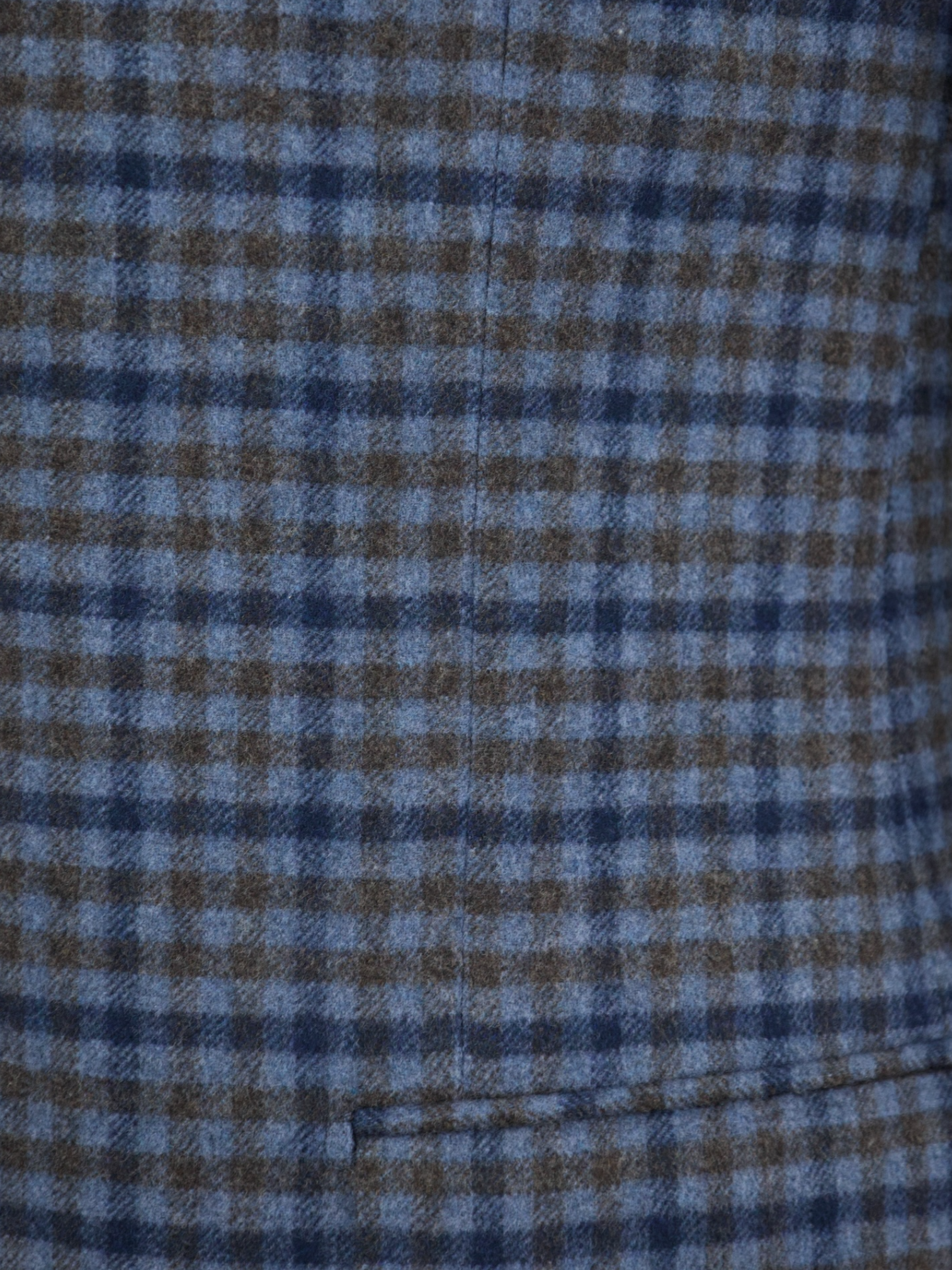 Ermenegildo Zegna Steel Blue & Dark Taupe Trofeo Wool & Cashmere Gingham Check Jacket