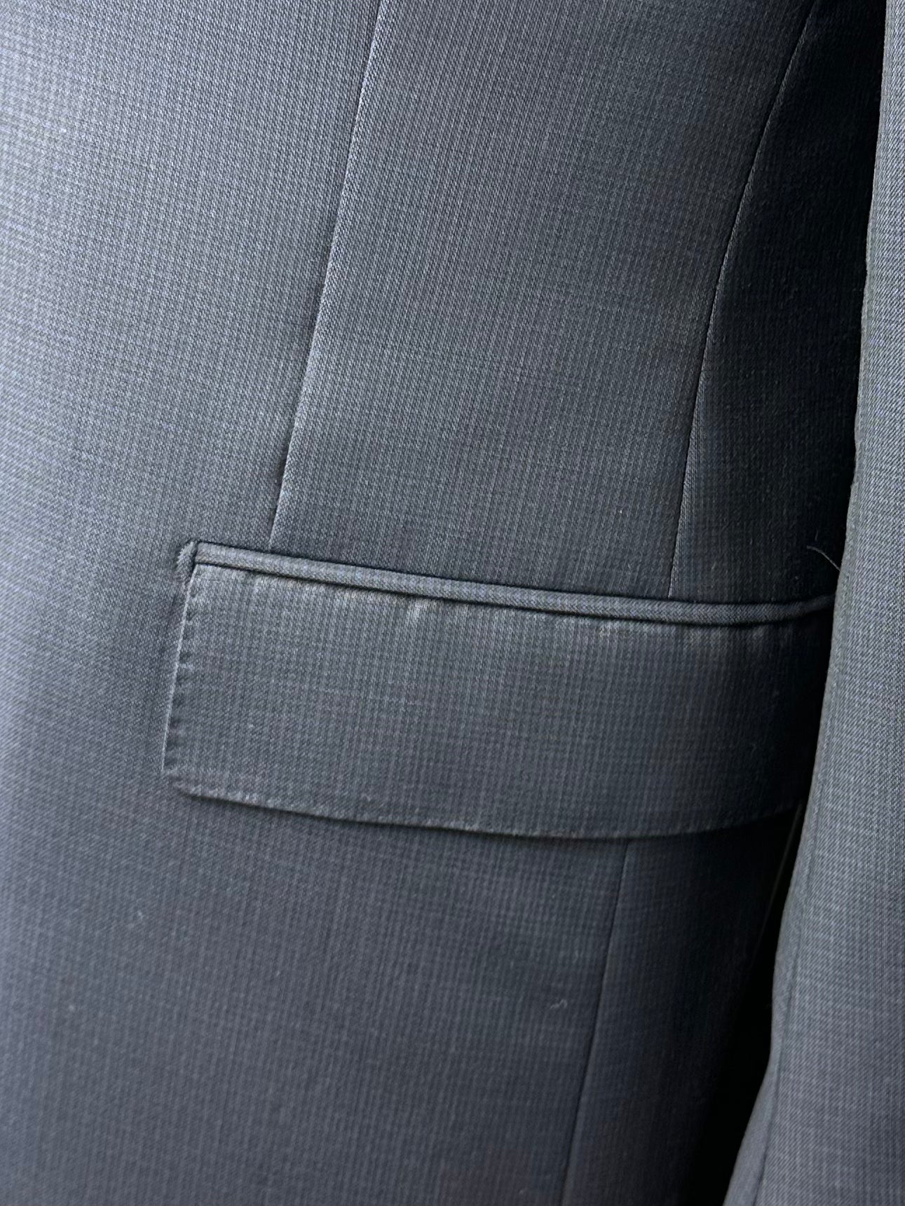 The first jacket pockets were sewn inside the lining or seams of garments, and are called “jetted” pockets. In their simplest form, they consist of little more than a slit. Suits that are the most formal, especially tuxedos, have no flap pockets altogether to give the piece a more streamlined look.
