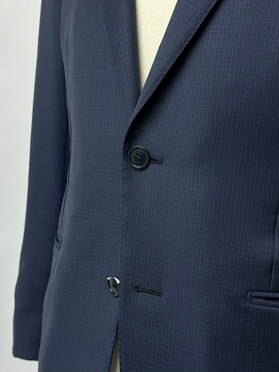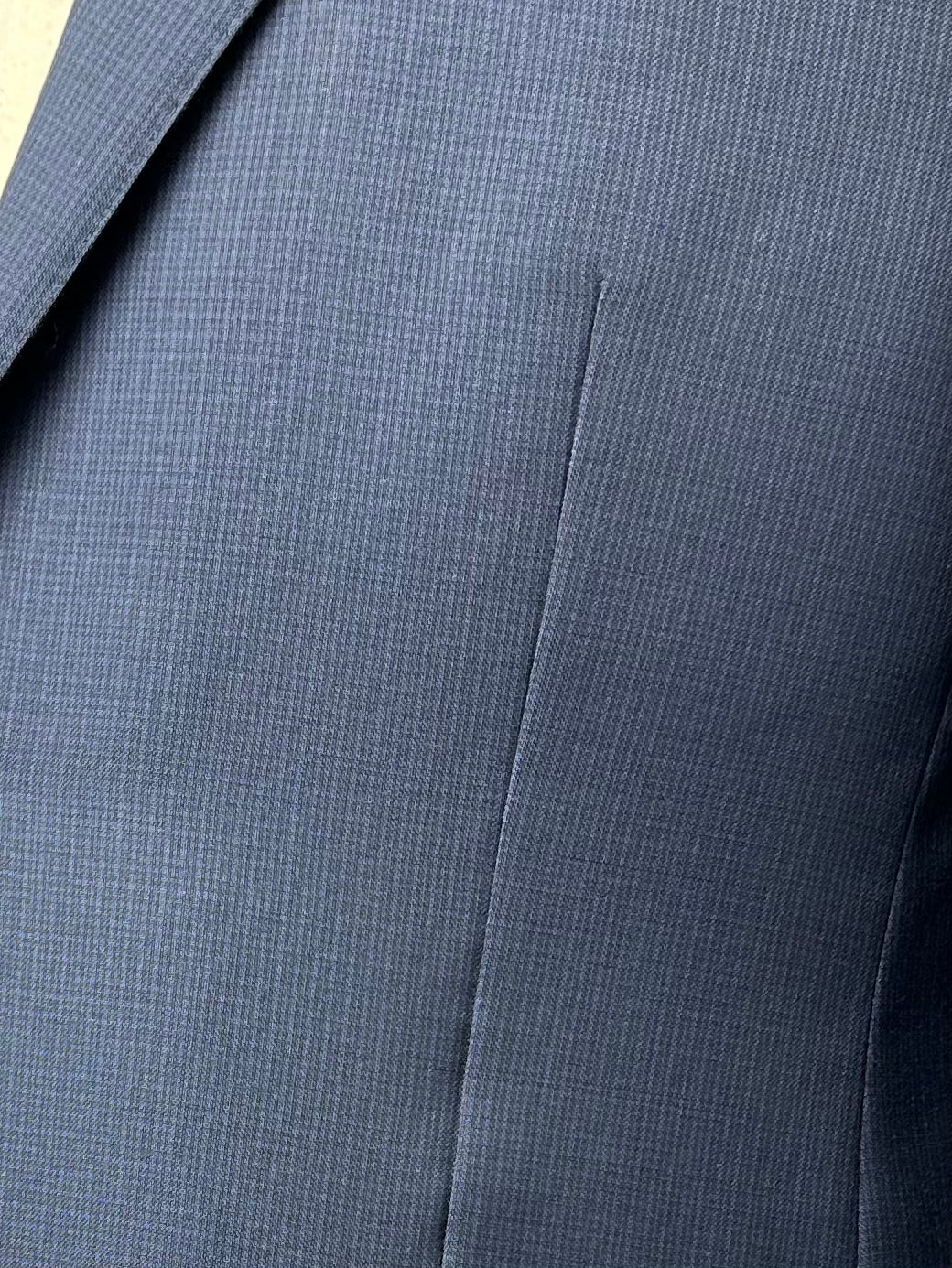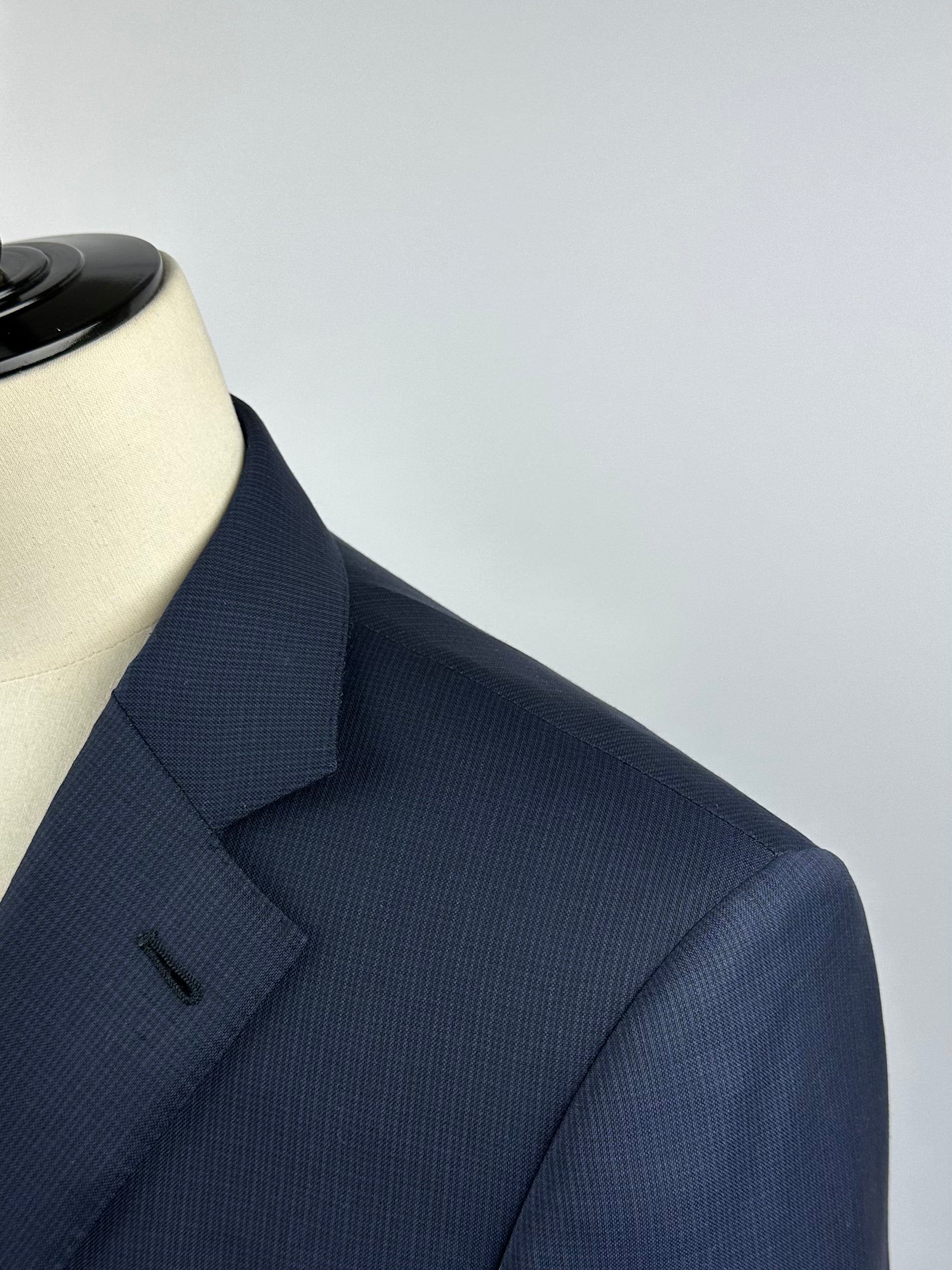 The tailors adds two darts - think of them as pinched seams - to ensure the jacket’s body achieves a slim silhouette. The process, called mezzo punto riprese, is done entirely by hand.
