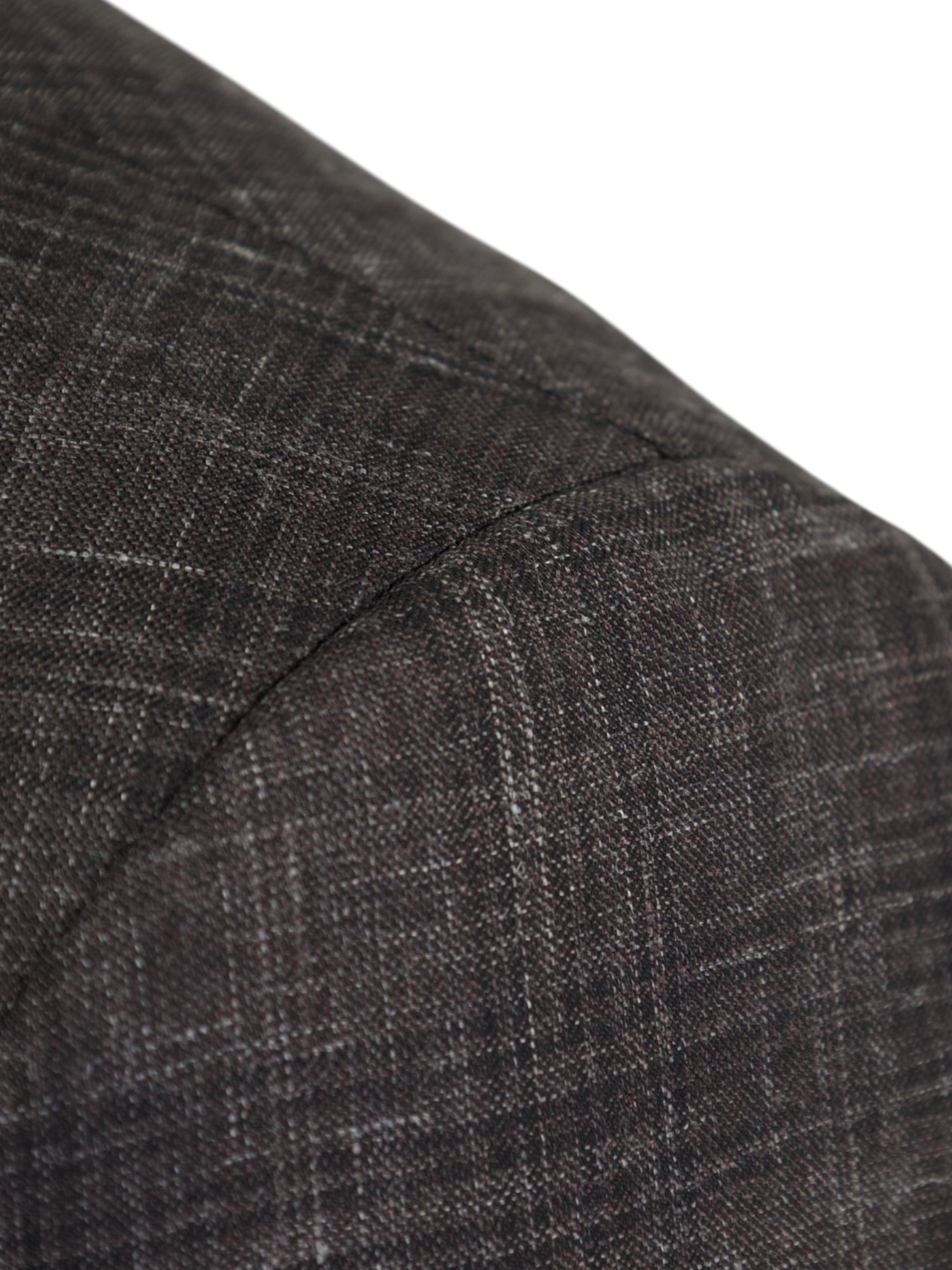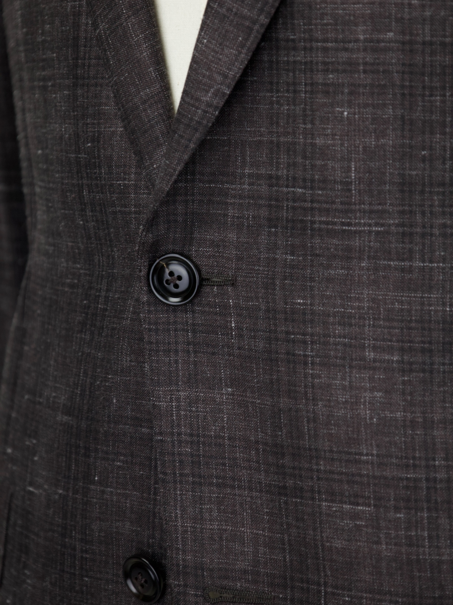 Discover the Ermenegildo Zegna walnut brown melange-check jacket, a refined expression of soft tailoring with a rich, textured finish. Crafted from an exquisite blend of cashmere, silk, and linen, the fabric offers both luxurious softness and breathable structure. The warm walnut brown base is subtly enriched by a melange-check pattern, adding depth and understated sophistication. Designed with notch lapels, flap pockets, and a lightweight construction, this jacket is an effortless choice for both smart casual and elevated formal dressing.