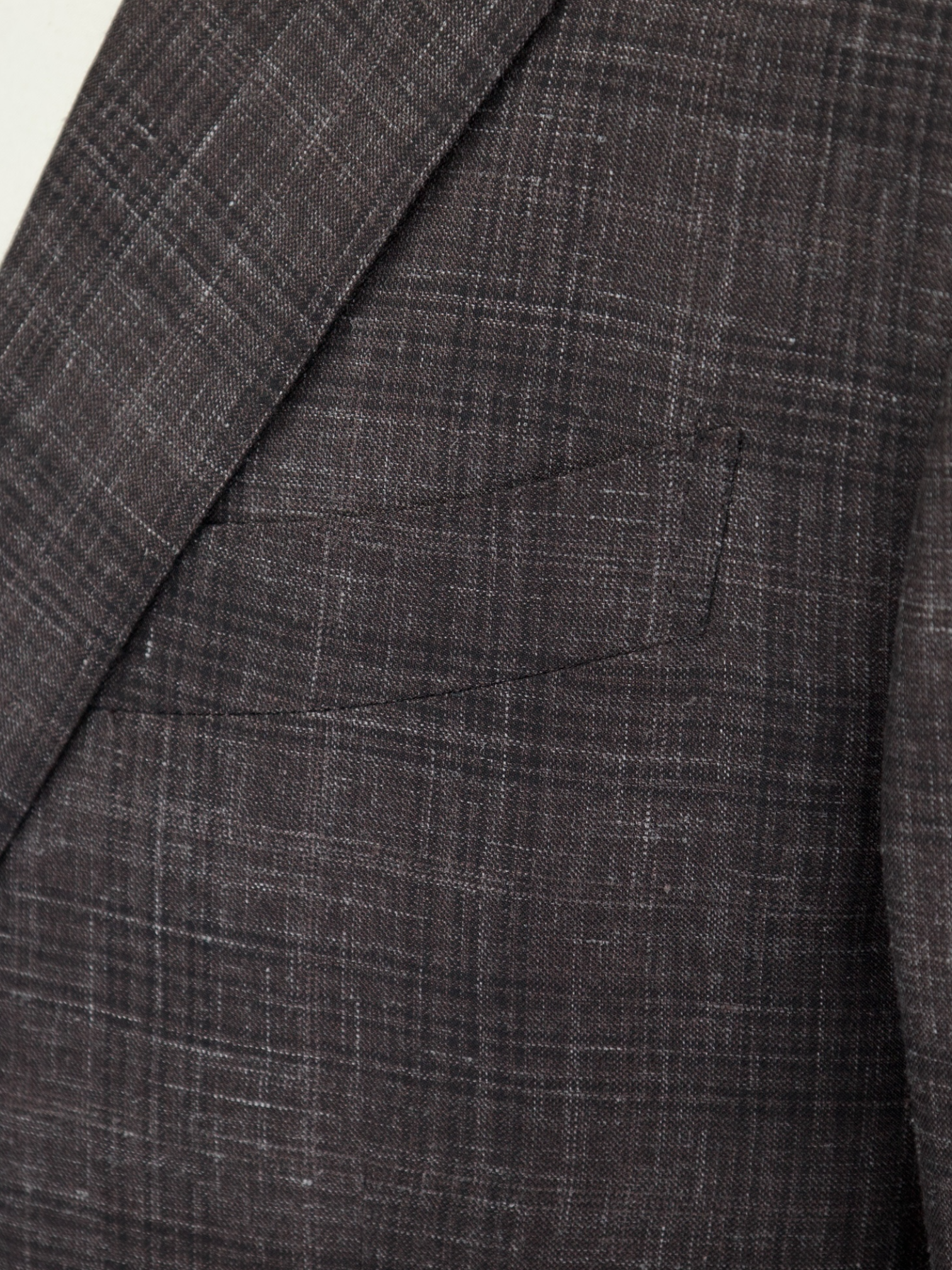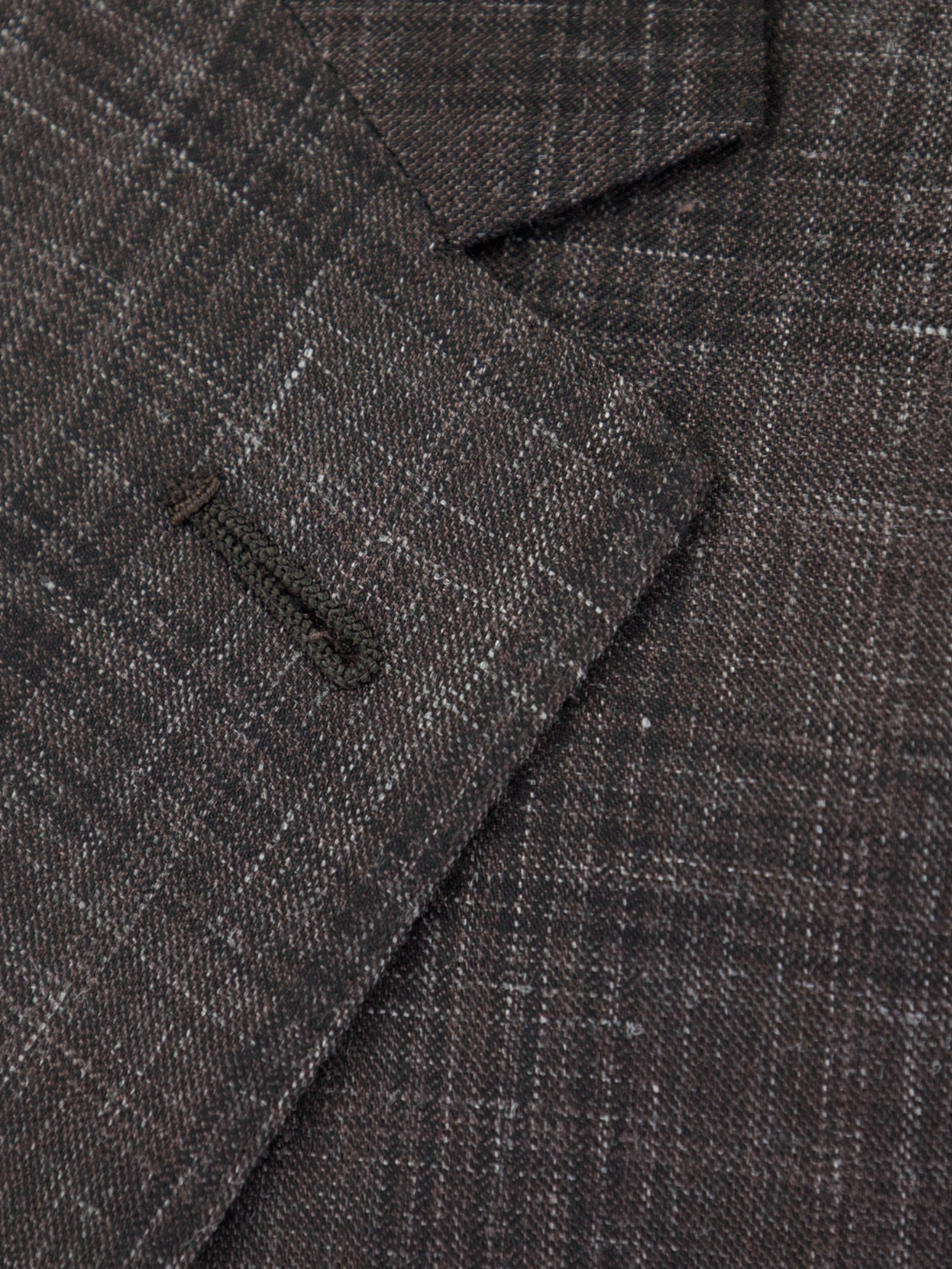 Ermenegildo Zegna Walnut Brown Cashmere, Silk & Linen Melange-Check Jacket