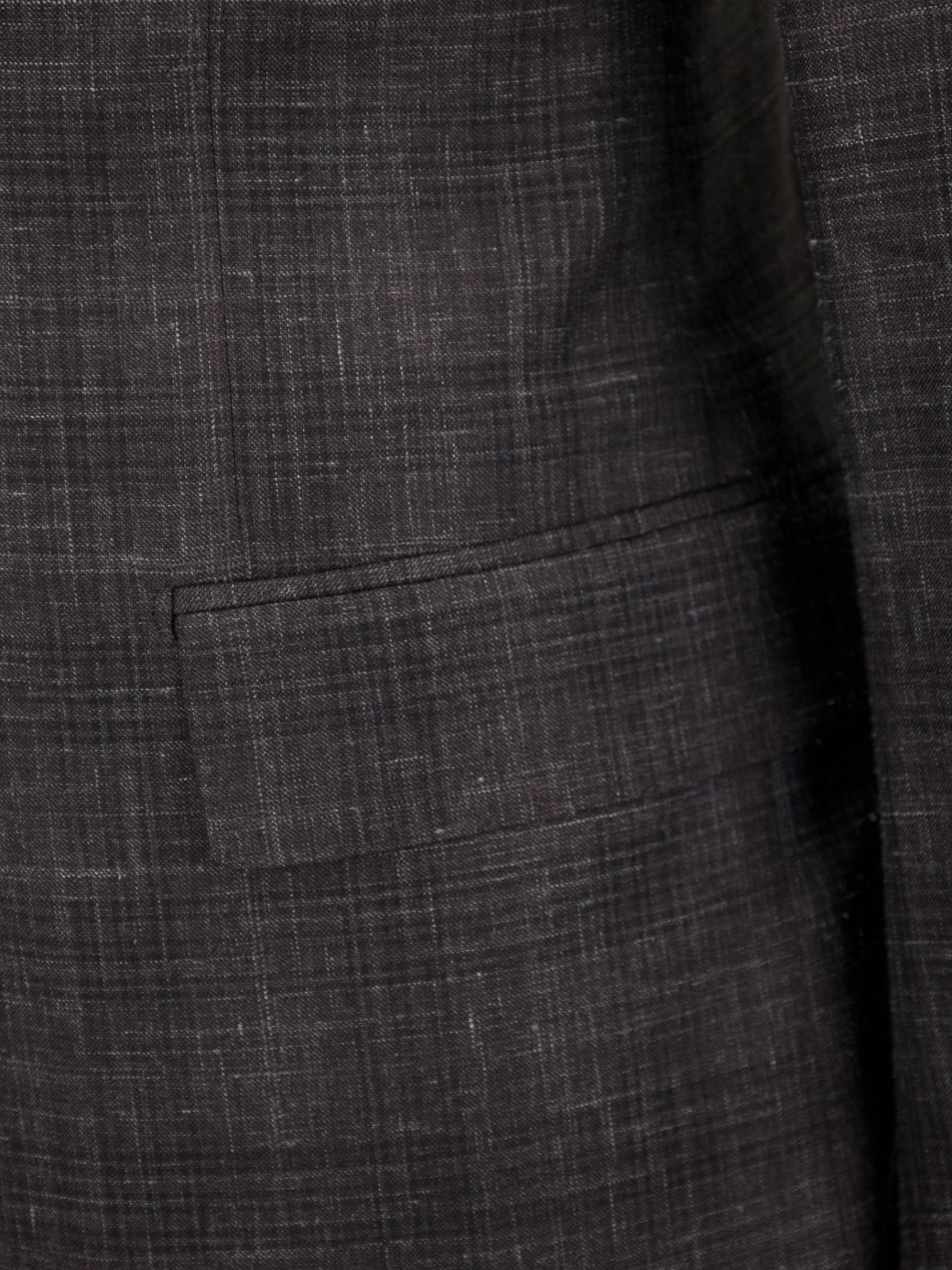 Also known as ‘barchetta’ Italian for ‘little boat’, it is so named because this pocket floats on the chest gently angled upward, just like the bow of a sailboat. These pockets echo the lively roll of a lapel that carries the spring of canvas and natural wool, unlike machine-made chest pockets that have a more stamped-out, rectangular shape and less life.