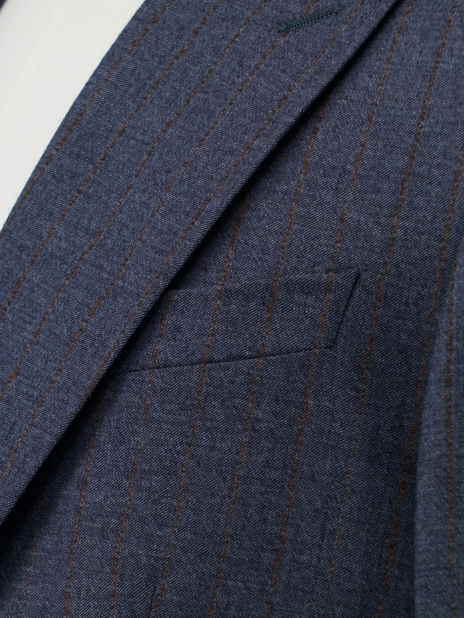 The barchetta pocket is often thought to be a tailoring detail exclusively from Italy. The word “barchetta” is Italian for “little boat.” It describes how the pocket floats on the chest, gently angled upwards, like the bow of a sailboat.