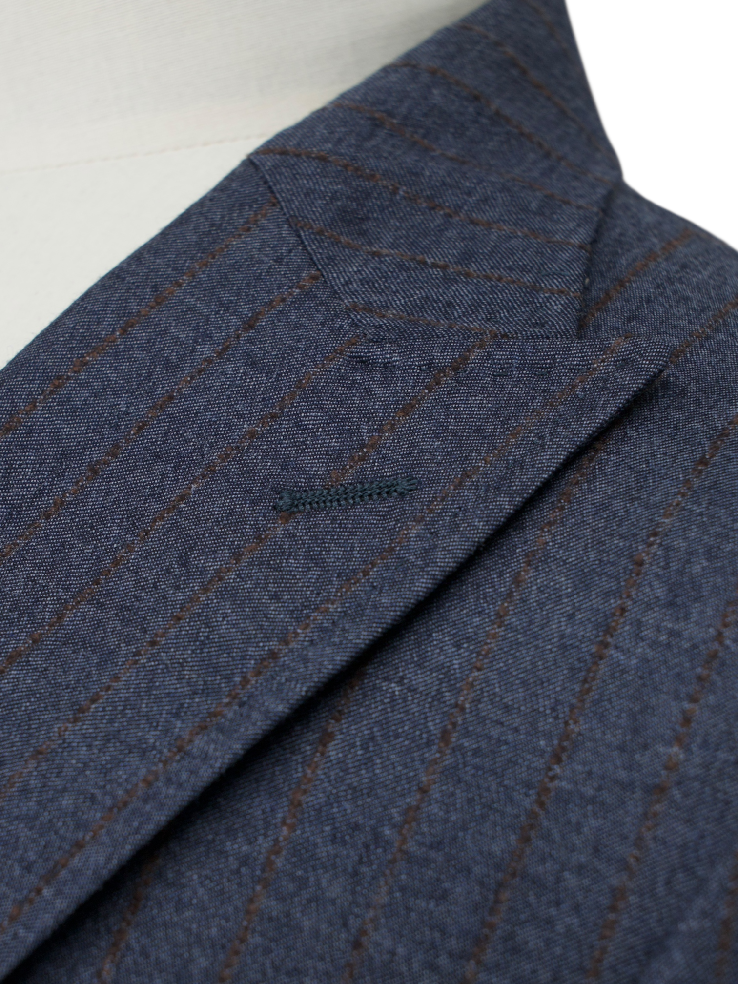 Handmade buttonholes are made using a chain of knotted loops called purl stitches that make them strong and visually distinctive. It takes about five seconds to sew a regular buttonhole with a machine – a single handmade buttonhole takes about 10 minutes to sew.
