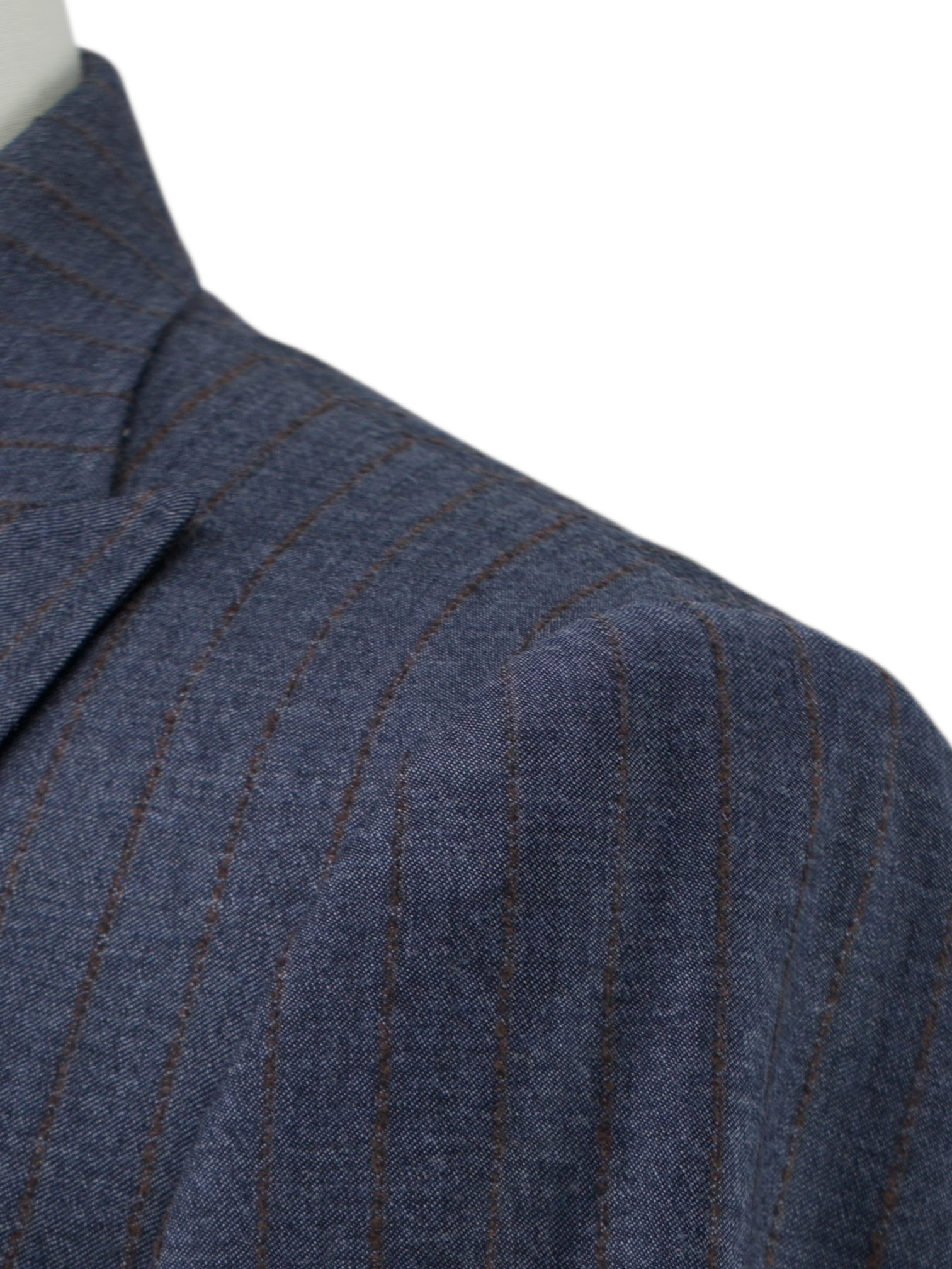 Etro Steel Blue & Brown Wool & Silk Pinstripe Suit