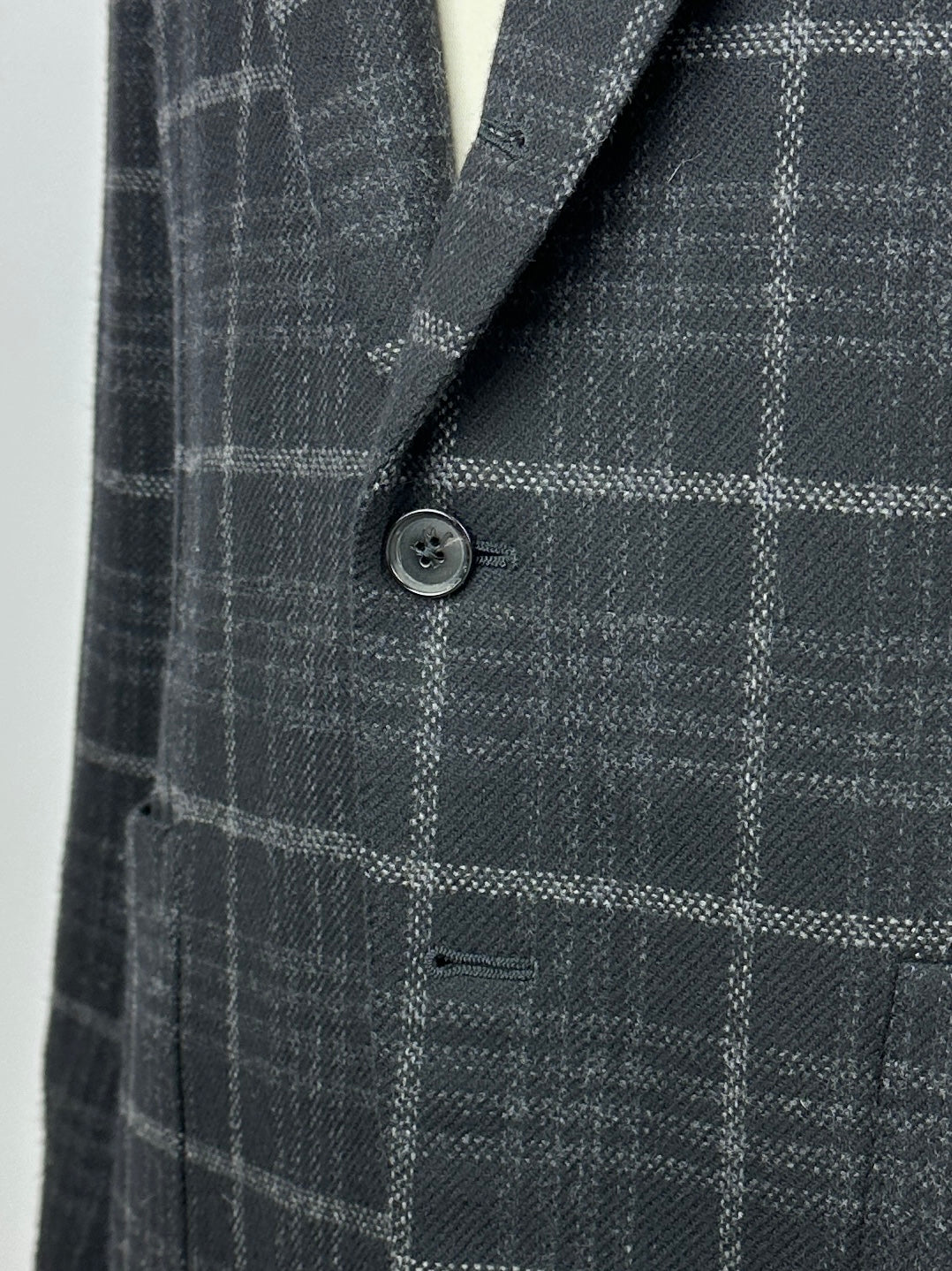 The ‘tre bottoni stirato a due’, also known as the three rolling on two lapel style, is perhaps the most infamous characteristic of the Neapolitan style jacket. The top button and buttonhole are ornamental, so are left unbuttoned. As the lapel rolls down it elegantly folds over the top button and stops just 4 cm above the second button creating the distinct roll of the lapel the style is known for. As it is intended to remain unbuttoned, the top buttonhole is actually made inside out so the beautiful side will still be visible.