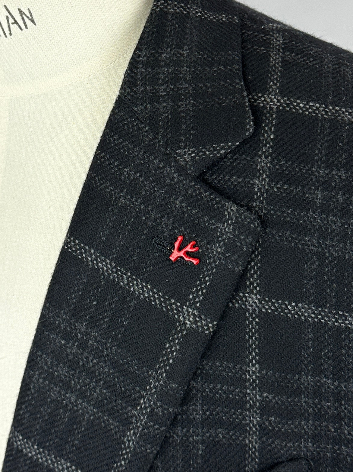 Isaia finishes off its blazers with a red-coral pin, which in Naples (Isaia's homebase) is meant to bring good luck.