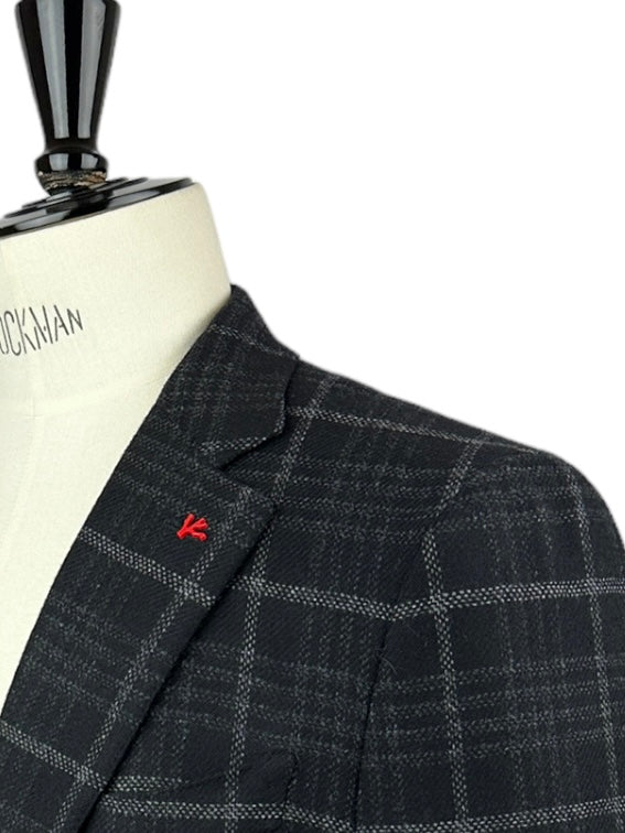 Isaia Black Overcheck Wool & Cashmere Jacket