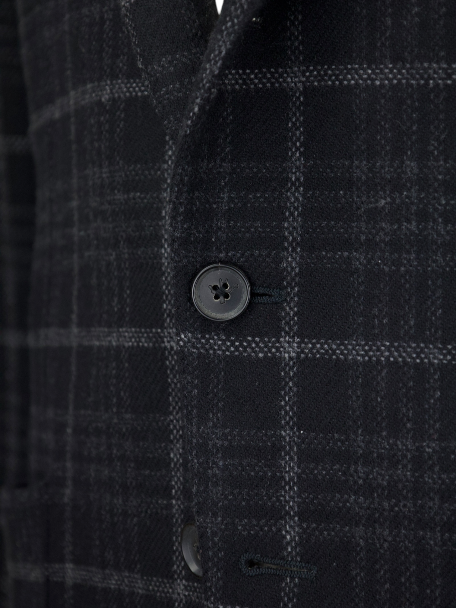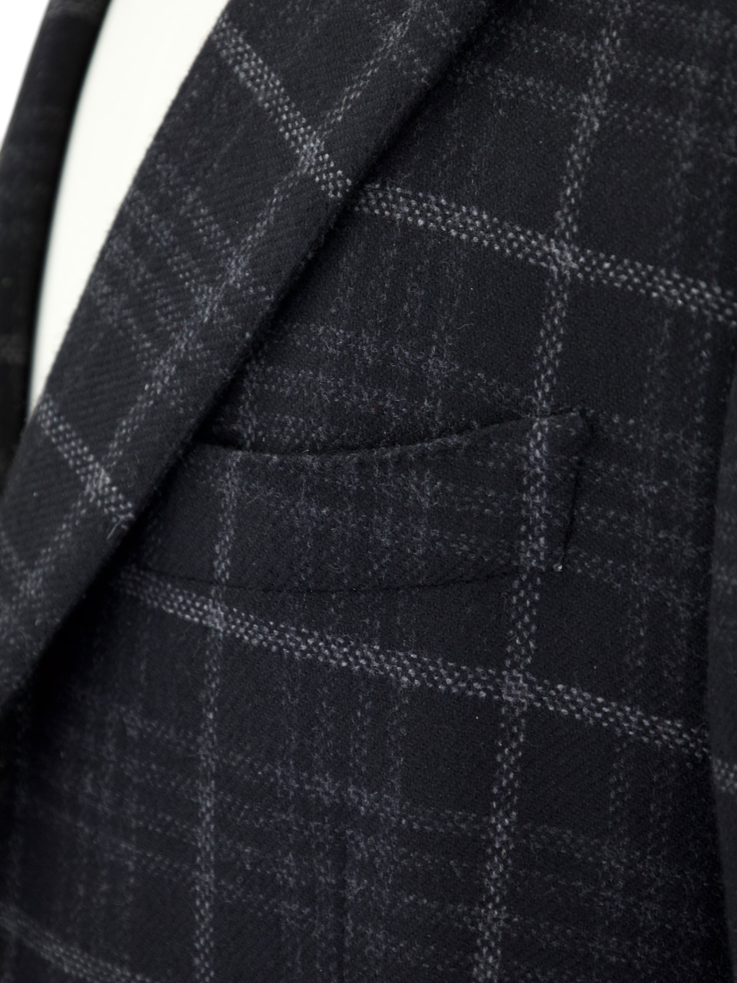 Handcrafted in Naples by Isaia's skilled artisans, this jacket is a testament to the brand’s dedication to Italian sartorial tradition. Each element is meticulously executed, from the hand-cut fabric to the precise stitching that ensures durability and a flawless fit. The cashmere blend undergoes a specialized finishing process to achieve its signature plushy feel, while the overcheck is expertly aligned for a seamless aesthetic. Discover the elaborated sartorial details below.