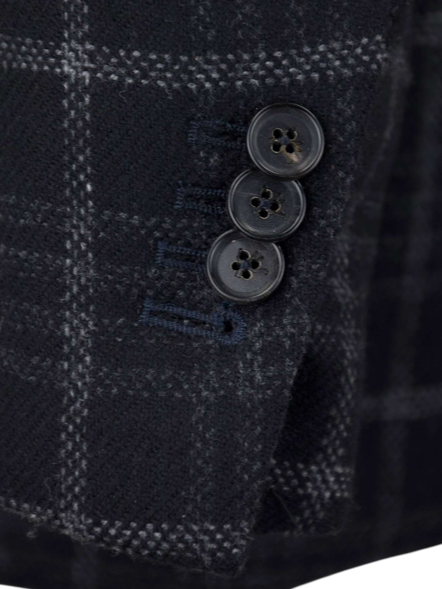 Also known as stacked buttons or waterfall buttons, kissing buttons are associated with Italian tailoring as Italian tailors make their jacket sleeve buttons in the kissing style. In this style, buttons touch each other and overlap one another. Handmade buttonholes; Even this step, apparently the simplest, is treated with an abundance of detail. Attaching the buttons is a job that requires patience and must be completed to perfection.