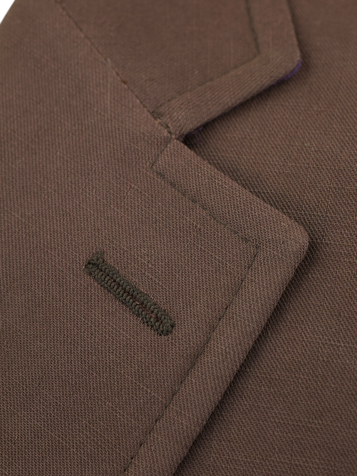 Handmade buttonholes are made using a chain of knotted loops called purl stitches that make them strong and visually distinctive. It takes about five seconds to sew a regular buttonhole with a machine – a single handmade buttonhole takes about 10 minutes to sew.