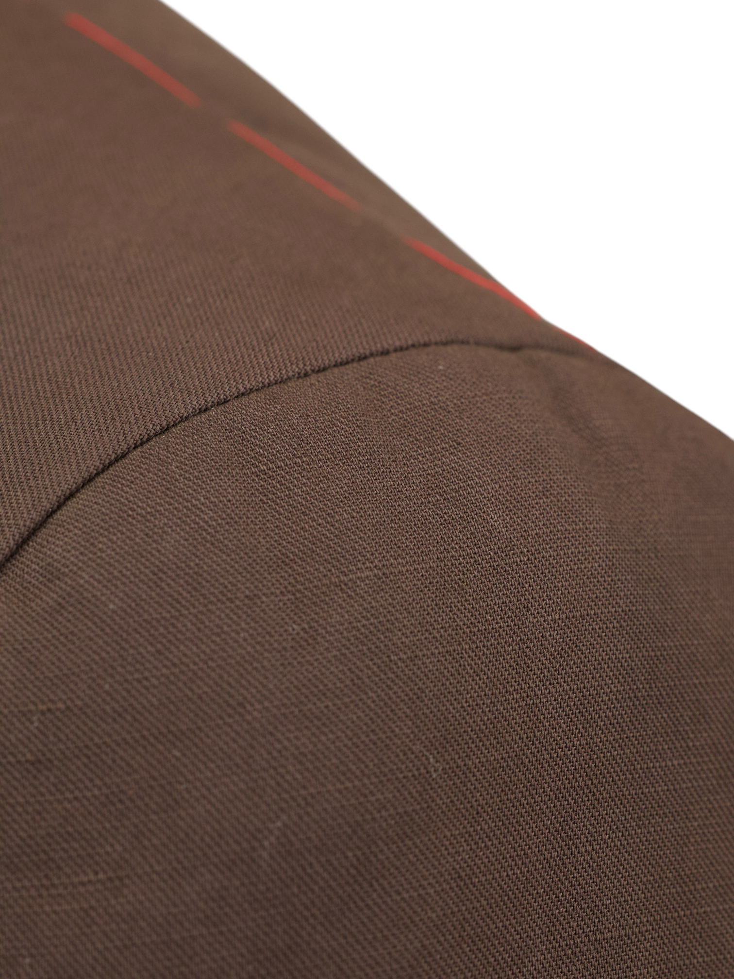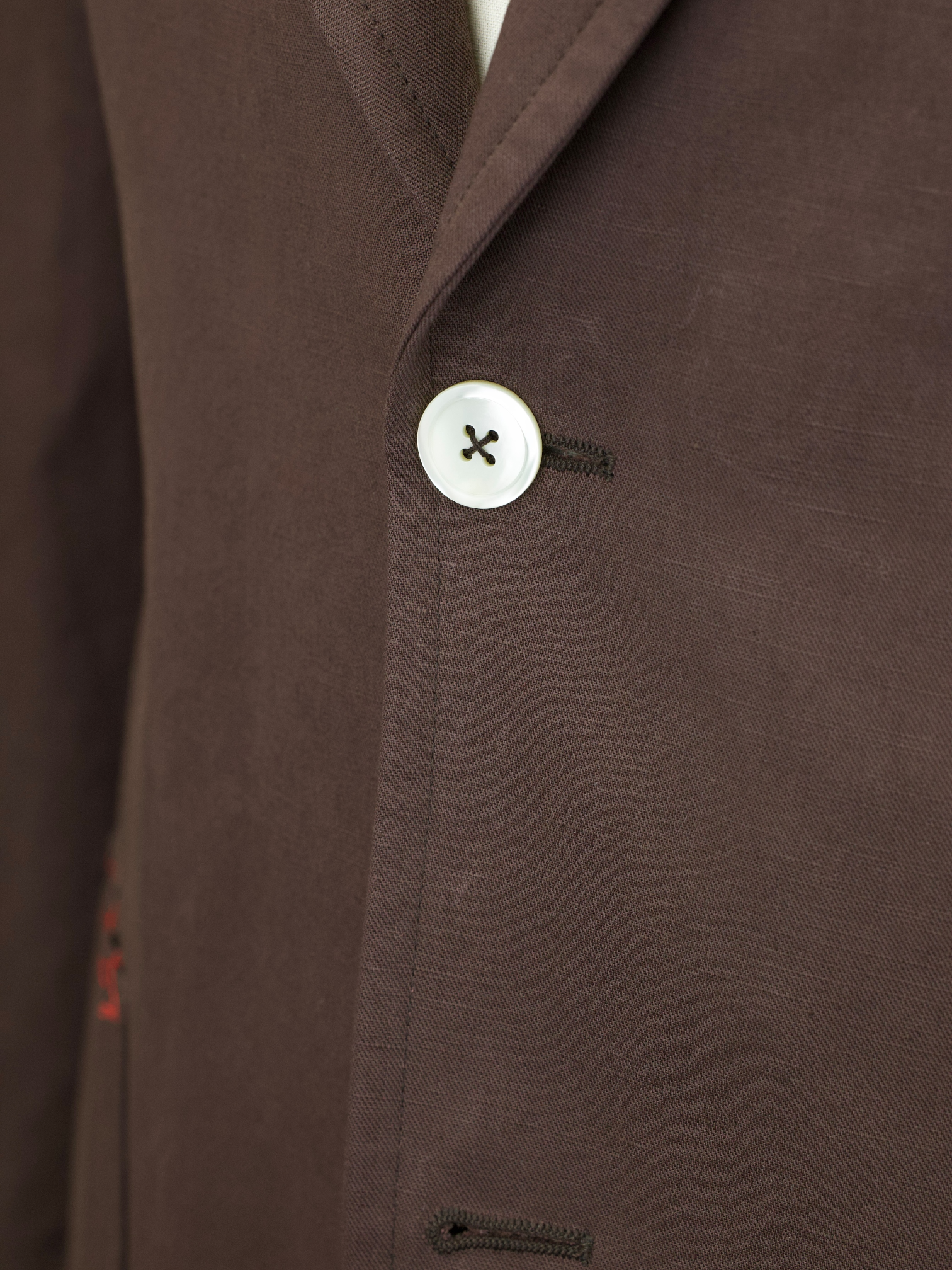 Discover the Isaia Chocolate Brown Cotton & Linen Unconstructed Summer Jacket, a relaxed yet sharply tailored essential designed for warm-weather sophistication. Crafted from a crisp cotton and linen blend, the fabric offers a dry hand and breathable structure, ideal for sunlit days where ease and polish go hand in hand. The deep chocolate brown hue brings richness and versatility to the season’s lighter palette. Notch lapels, white mother-of-pearl buttons, and patch pockets contribute to its effortless, smart-casual character, while Isaia’s signature red coral lapel pin adds a discreet nod to Neapolitan flair.