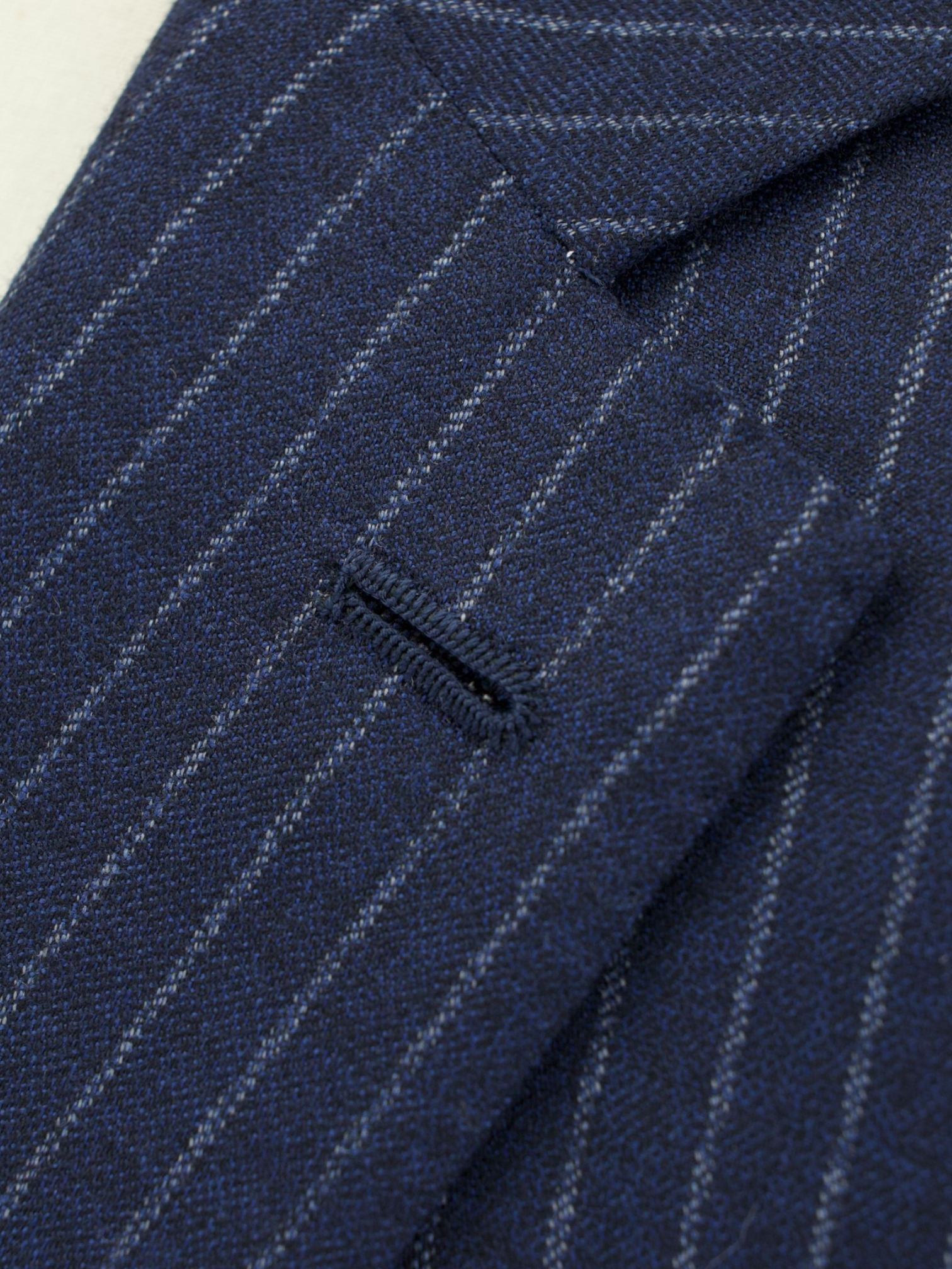 Neapolitan master tailors add two darts - think of them as pinched seams - to ensure the jacket’s body achieves a slim silhouette. The process, called mezzo punto riprese, is done entirely by hand.