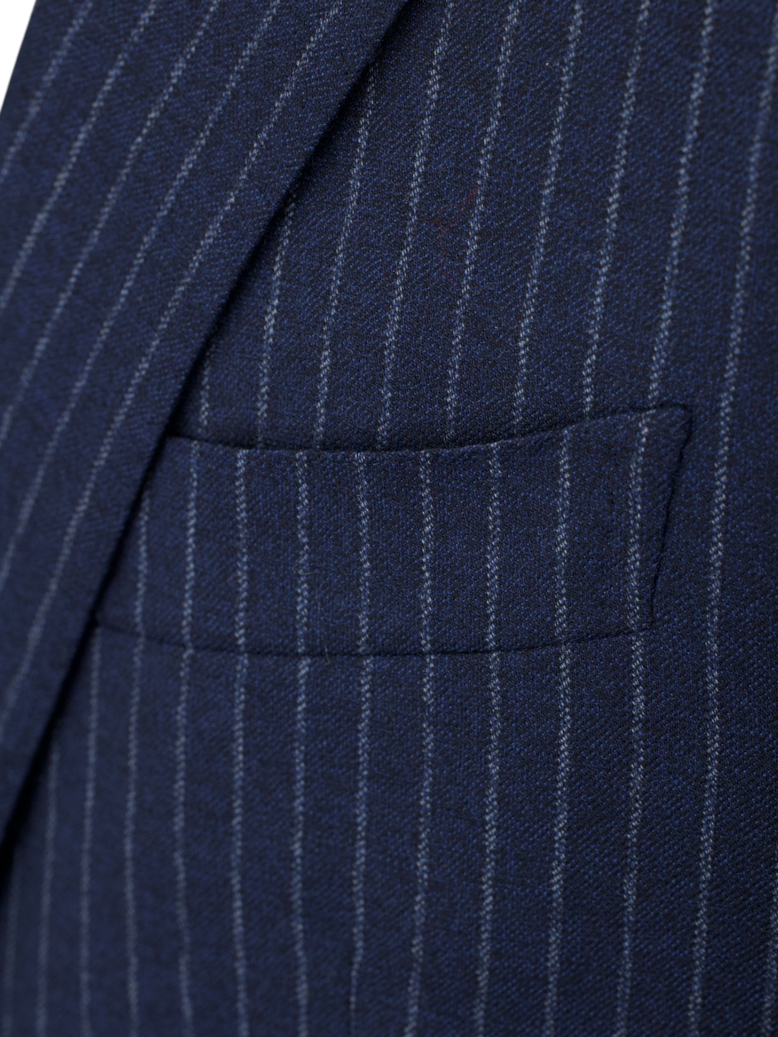 The barchetta pocket is often thought to be a tailoring detail exclusively from Italy. The word “barchetta” is Italian for “little boat.” It describes how the pocket floats on the chest, gently angled upwards, like the bow of a sailboat.