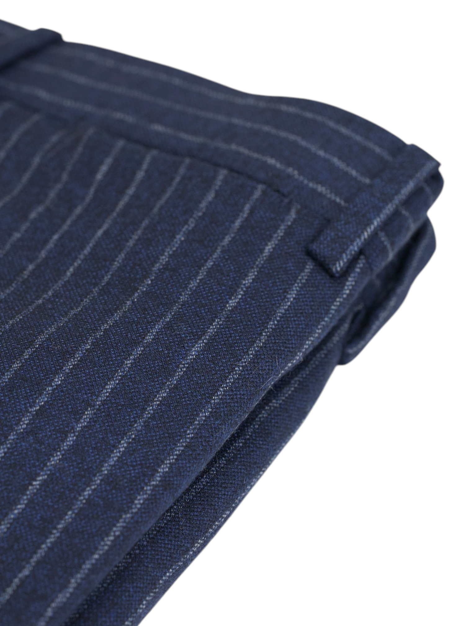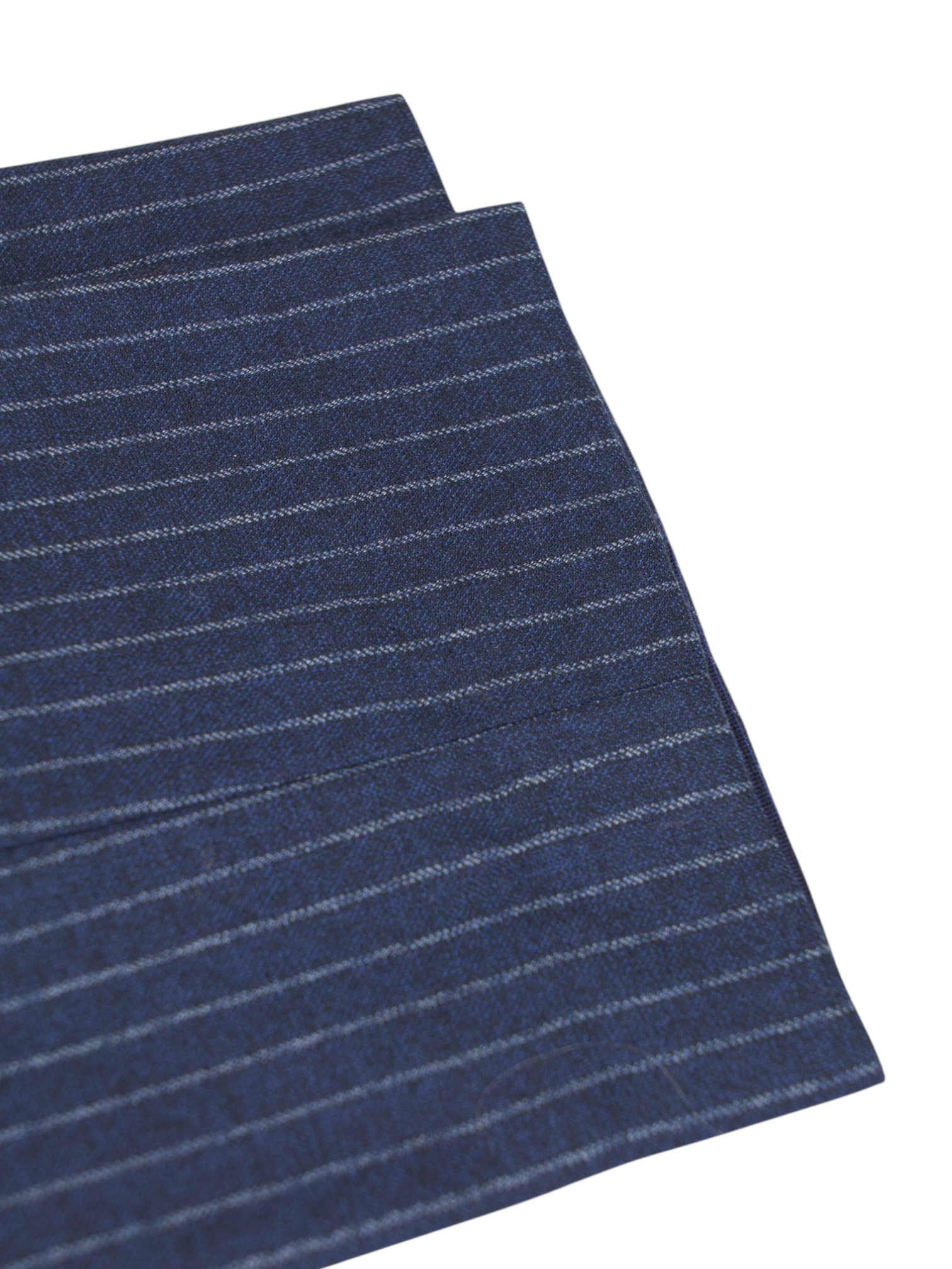 Discover the refined depth of this Isaia dark indigo “Amalfi” winter suit, tailored in a rich wool flannel with a soft, almost cloud-like texture. The fabric’s subtle nap gives it a warm, tactile appeal—perfect for cooler climates—while the deep indigo hue offers a modern alternative to navy, striking a balance between boldness and formality. Designed with notch lapels, double vents, and a slim fit, the suit’s silhouette is clean and contemporary, yet unmistakably rooted in classic Neapolitan tailoring.
