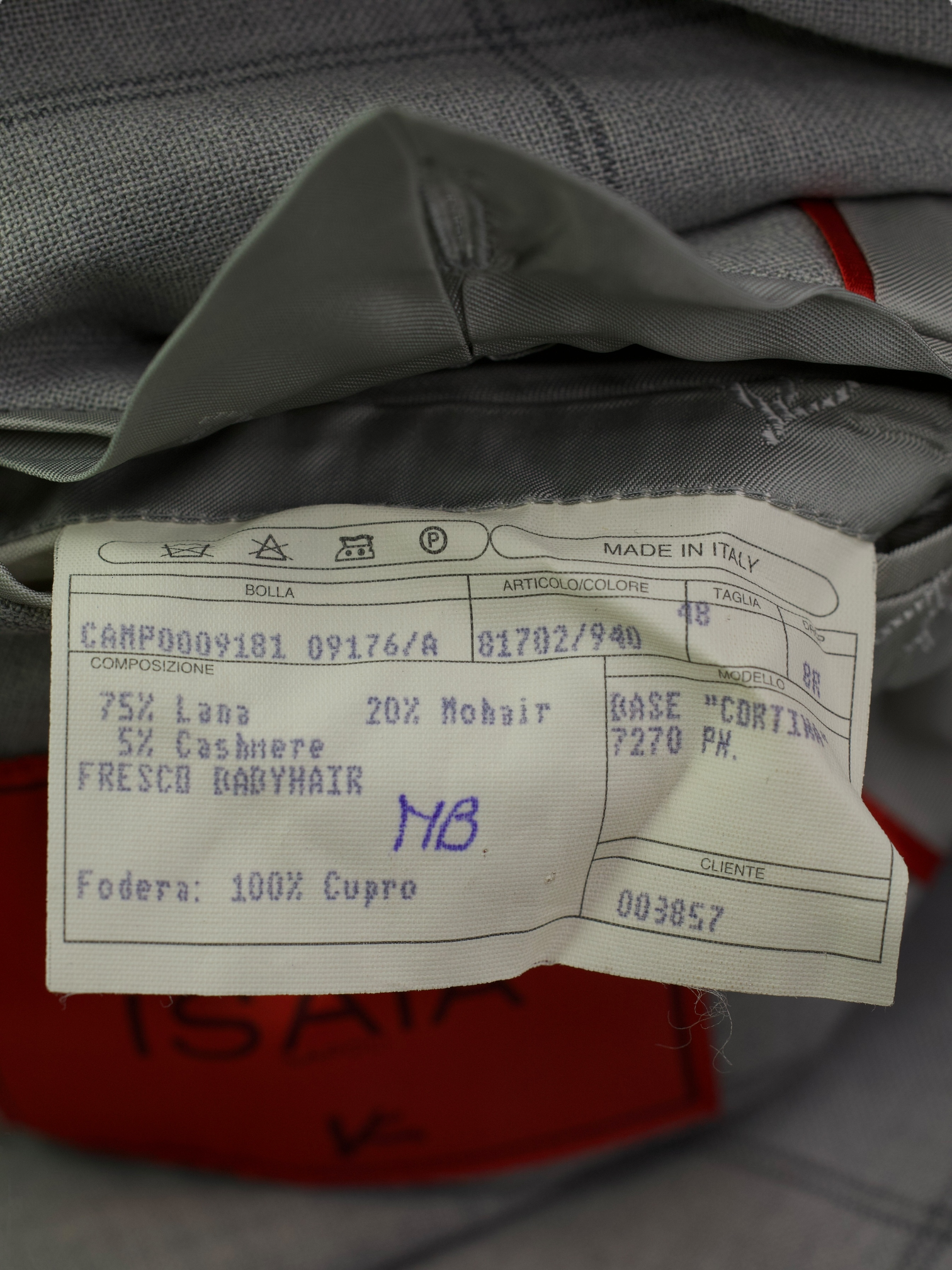 Composition: 75% Wool / 20% Mohair / 5% Cashmere "Fresco Babyhair"