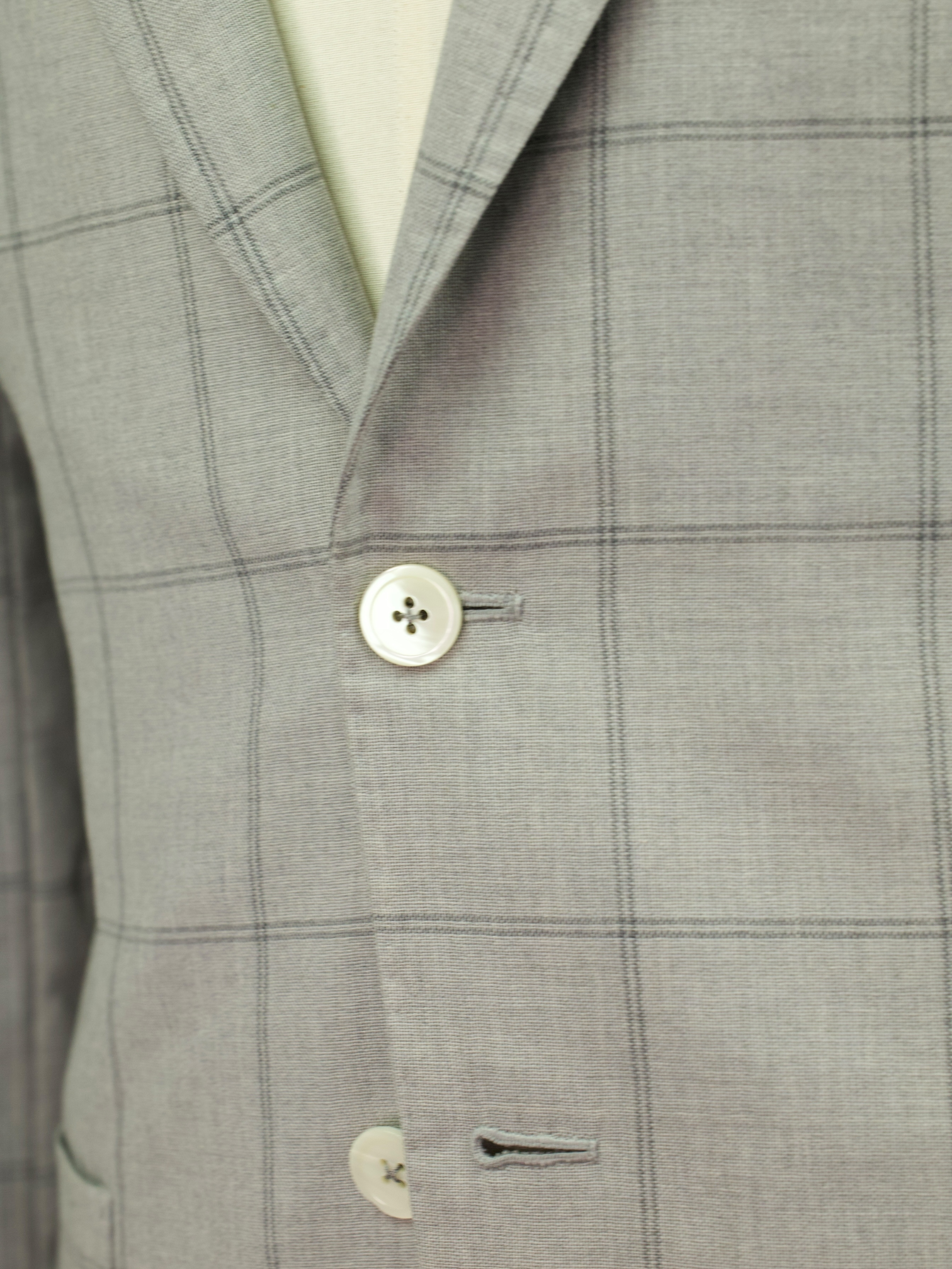 Also known as stacked buttons or waterfall buttons, kissing buttons are associated with Italian tailoring as Italian tailors make their jacket sleeve buttons in the kissing style. In this style, buttons touch each other and overlap one another. Handmade buttonholes; Even this step, apparently the simplest, is treated with an abundance of detail. Attaching the buttons is a job that requires patience and must be completed to perfection.