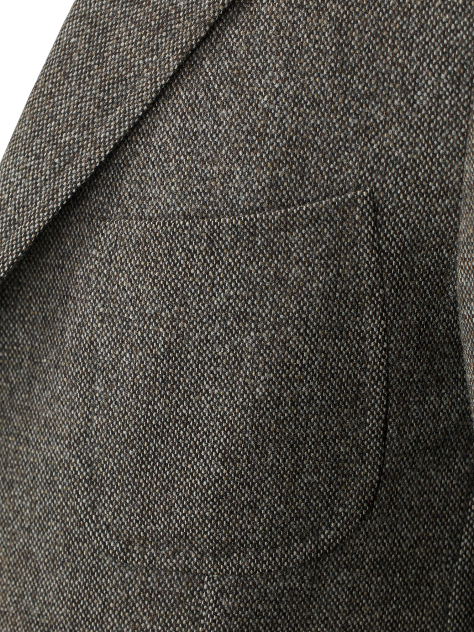 Discover the Isaia Light Brown Wool and Cashmere Micro Pattern Jacket, a softly expressive piece that rewards a closer look. Woven from a luxurious wool and cashmere blend, the cloth carries a refined bicolour micro pattern that adds depth without overpowering the warm light brown base. Tailored with notch lapels and left half lined for enhanced lightness, the jacket balances structure with ease. A patch pocket at the chest and patch pockets at the sides reinforce its relaxed Neapolitan character, while horn buttons lend a natural, understated finish.