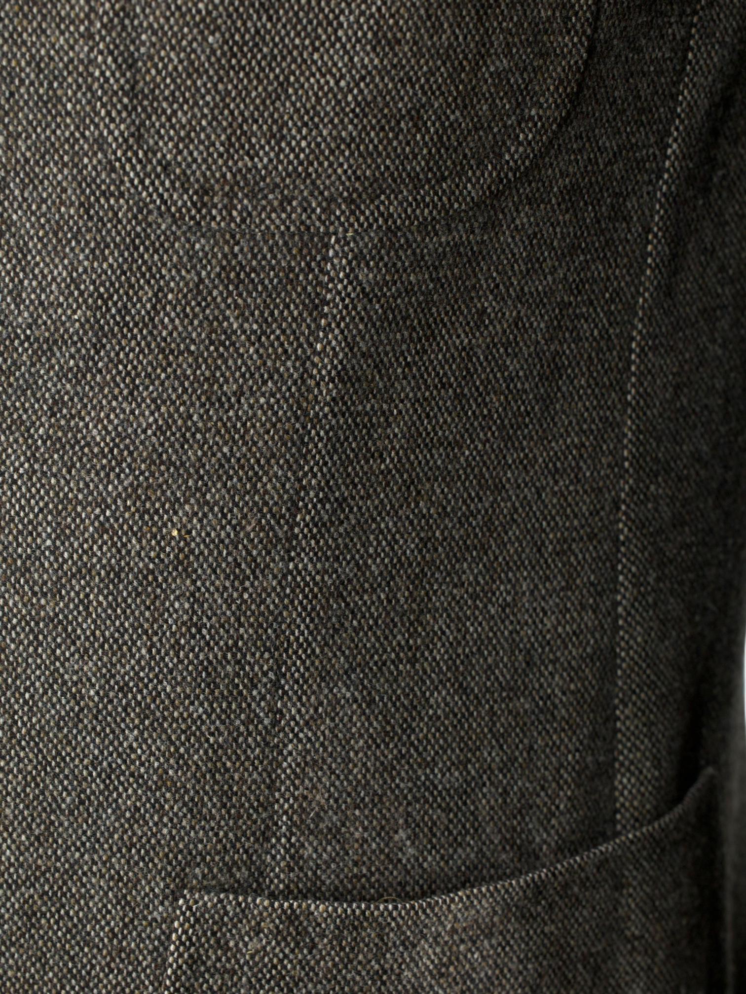 Cut in the Dustin base, the jacket reflects one of Isaia’s established tailoring blocks, designed to offer a balanced, modern silhouette rooted in Neapolitan tradition. The fit is characterised by a softly constructed shoulder, a clean line through the chest and gentle shaping at the waist, avoiding aggressive suppression while maintaining definition. The proportions are calibrated to feel contemporary yet comfortable, allowing the jacket to drape naturally over knitwear or fine shirting. Crafted in Naples with careful internal work and hand finishing, it exemplifies Isaia’s ability to merge expressive fabric with measured, sartorial precision. Discover the elaborated sartorial details below.