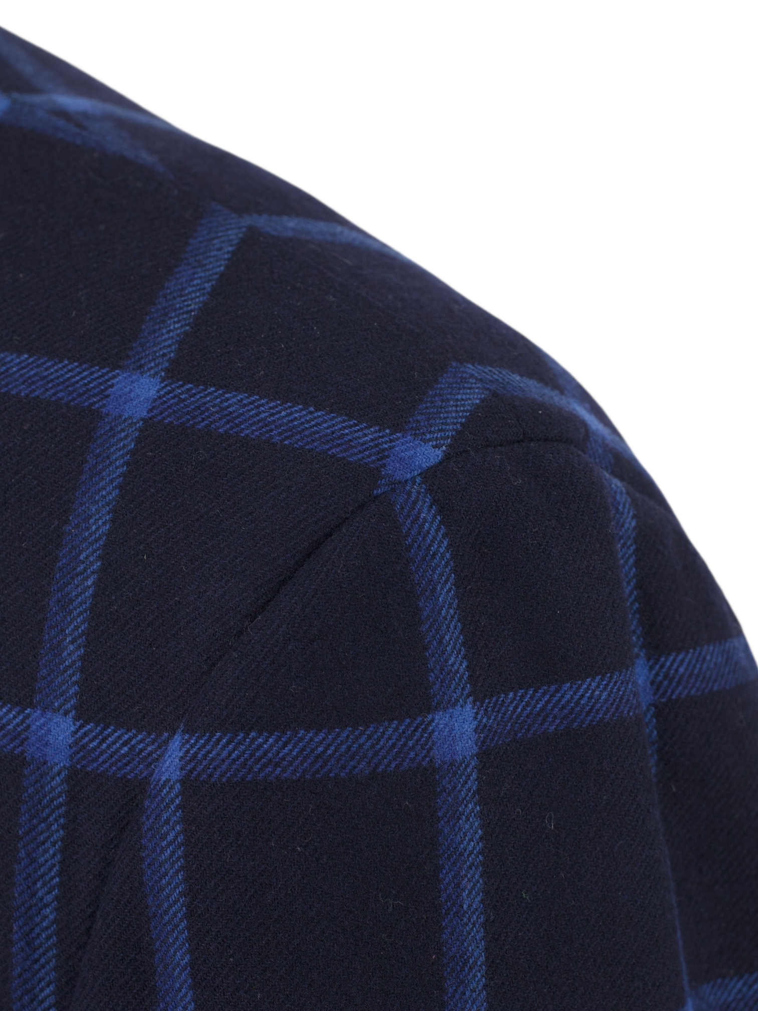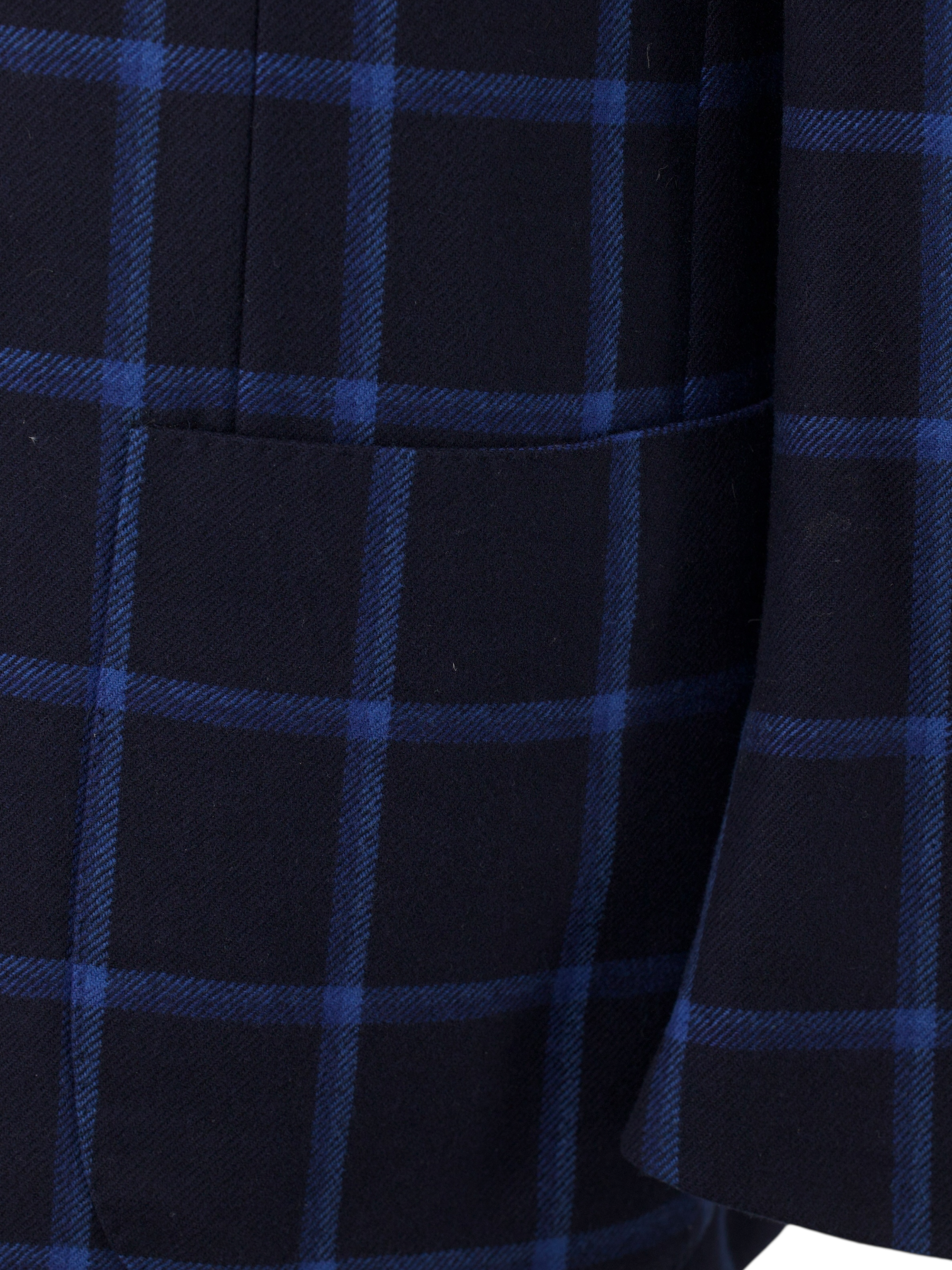 Isaia Navy & Azure Blue Wool Windowpane Jacket