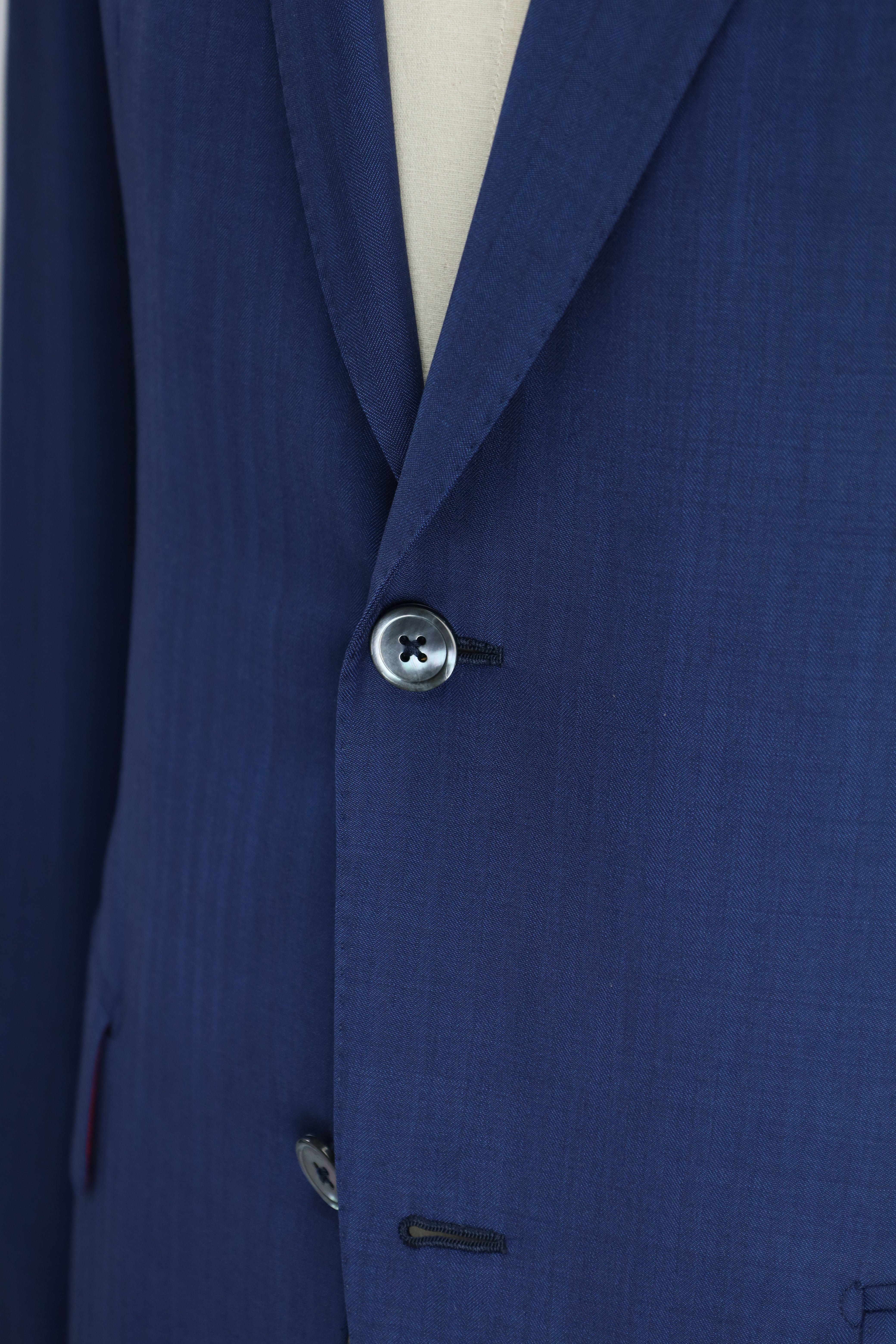 Also known as stacked buttons or waterfall buttons, kissing buttons are associated with Italian tailoring as Italian tailors make their jacket sleeve buttons in the kissing style. In this style, buttons touch each other and overlap one another. Handmade buttonholes; Even this step, apparently the simplest, is treated with an abundance of detail. Attaching the buttons is a job that requires patience and must be completed to perfection.