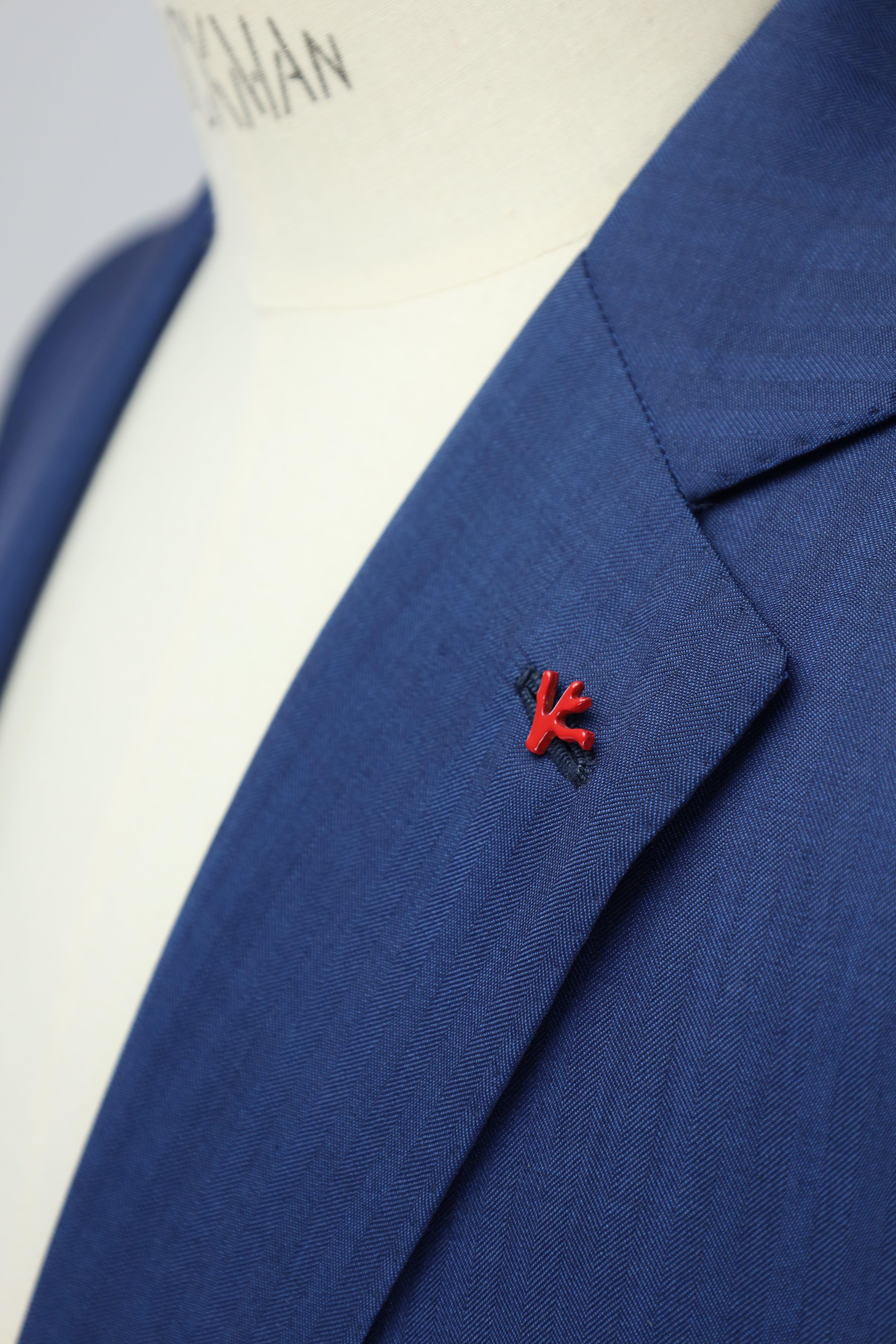 The Isaia Petrol Solaro Herringbone Suit seamlessly blends modern style with timeless sophistication. Its eye-catching petrol hue and classic herringbone pattern make a bold statement, while the addition of mother of pearl buttons and a vibrant red coral pin adds a touch of refined elegance. Whether for formal events or everyday wear, this suit exudes confidence and individuality, ensuring you stand out with effortless style. Discover the elaborated sartorial details below.