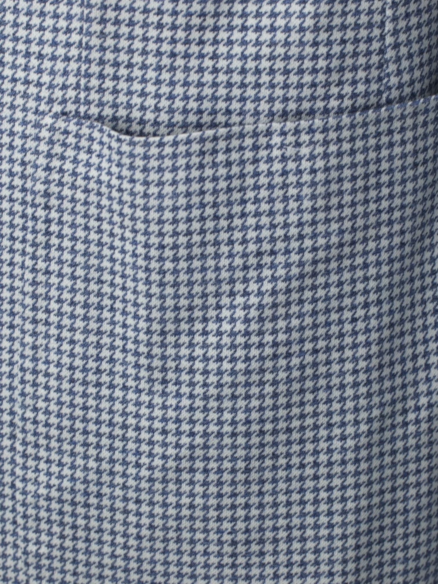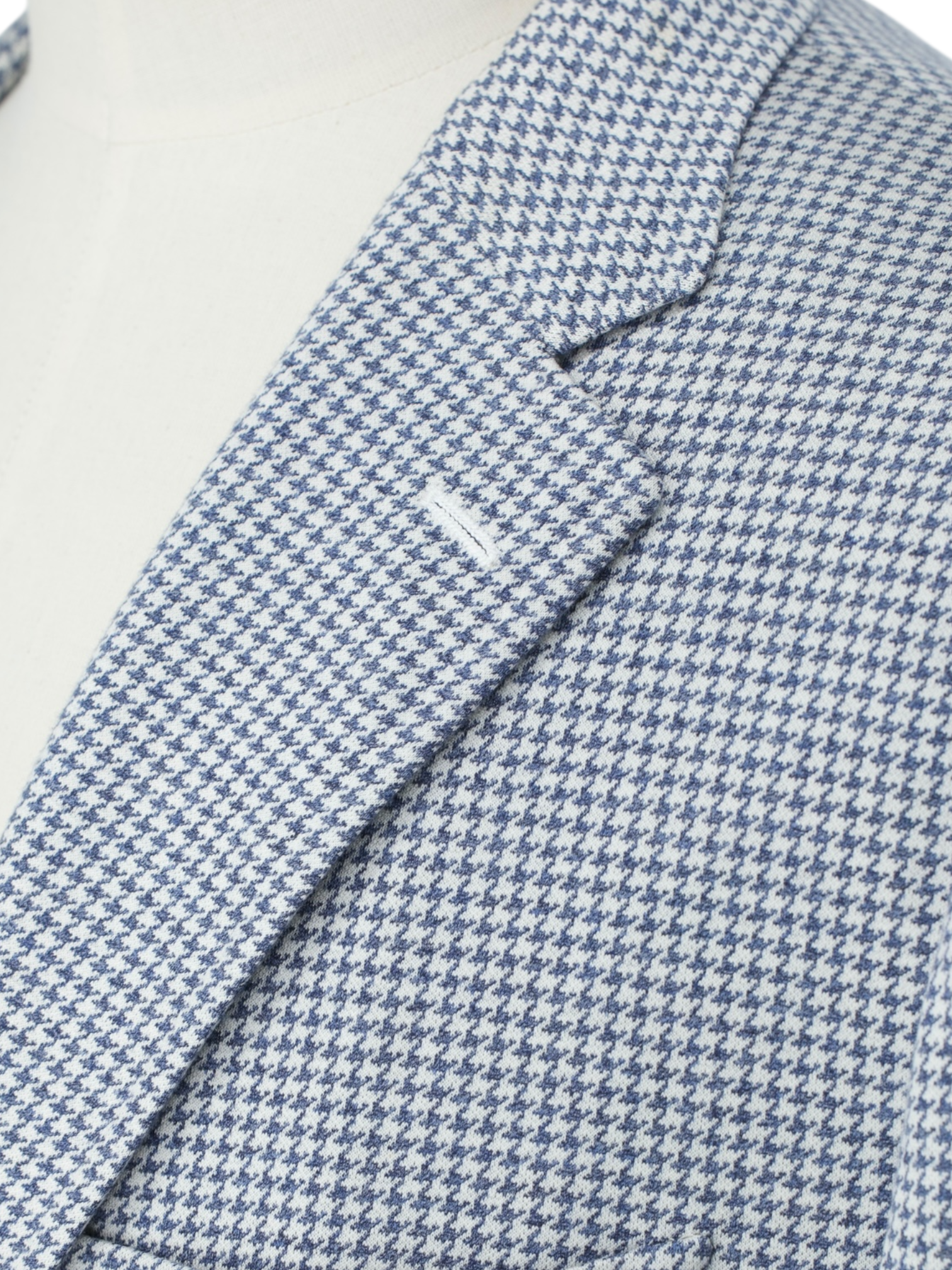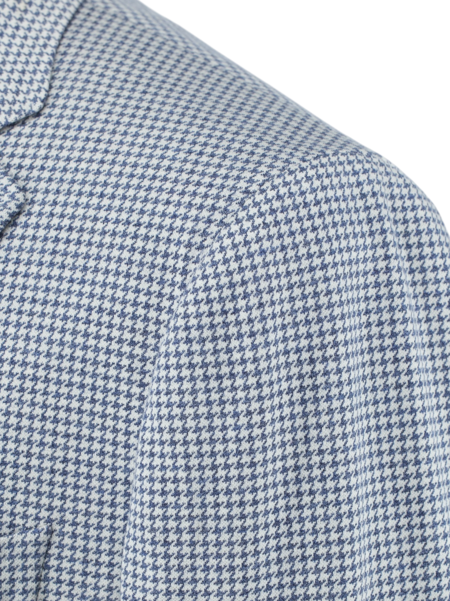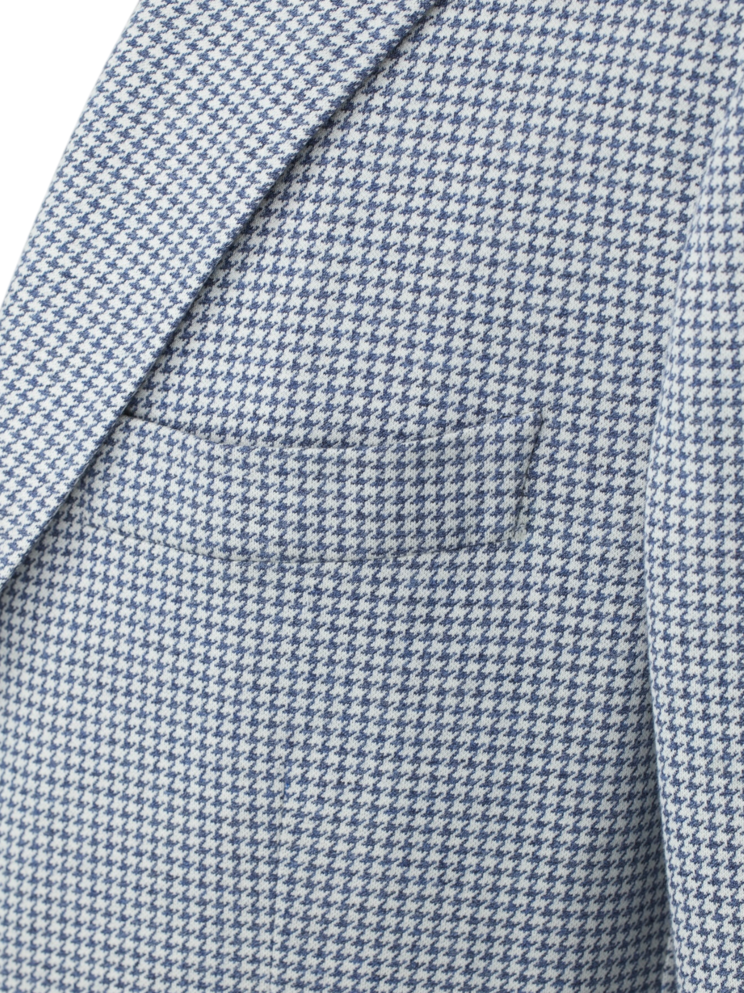 Discover the Isaia Steel Blue Silk and Cotton Pied de Poule “Comfort Project” Jacket, a refined example of Neapolitan tailoring with a modern, easygoing twist. The fabric features a classic pied de poule pattern with a crisp white base and steel blue motif, creating a look that reads almost as a soft blue from a distance while revealing intricate texture up close. Woven from a blend of silk and cotton, the cloth has a smooth, lightweight feel with a gentle sheen that enhances the pattern’s depth. The silhouette remains relaxed and fluid, allowing the jacket to feel polished without appearing overly formal.