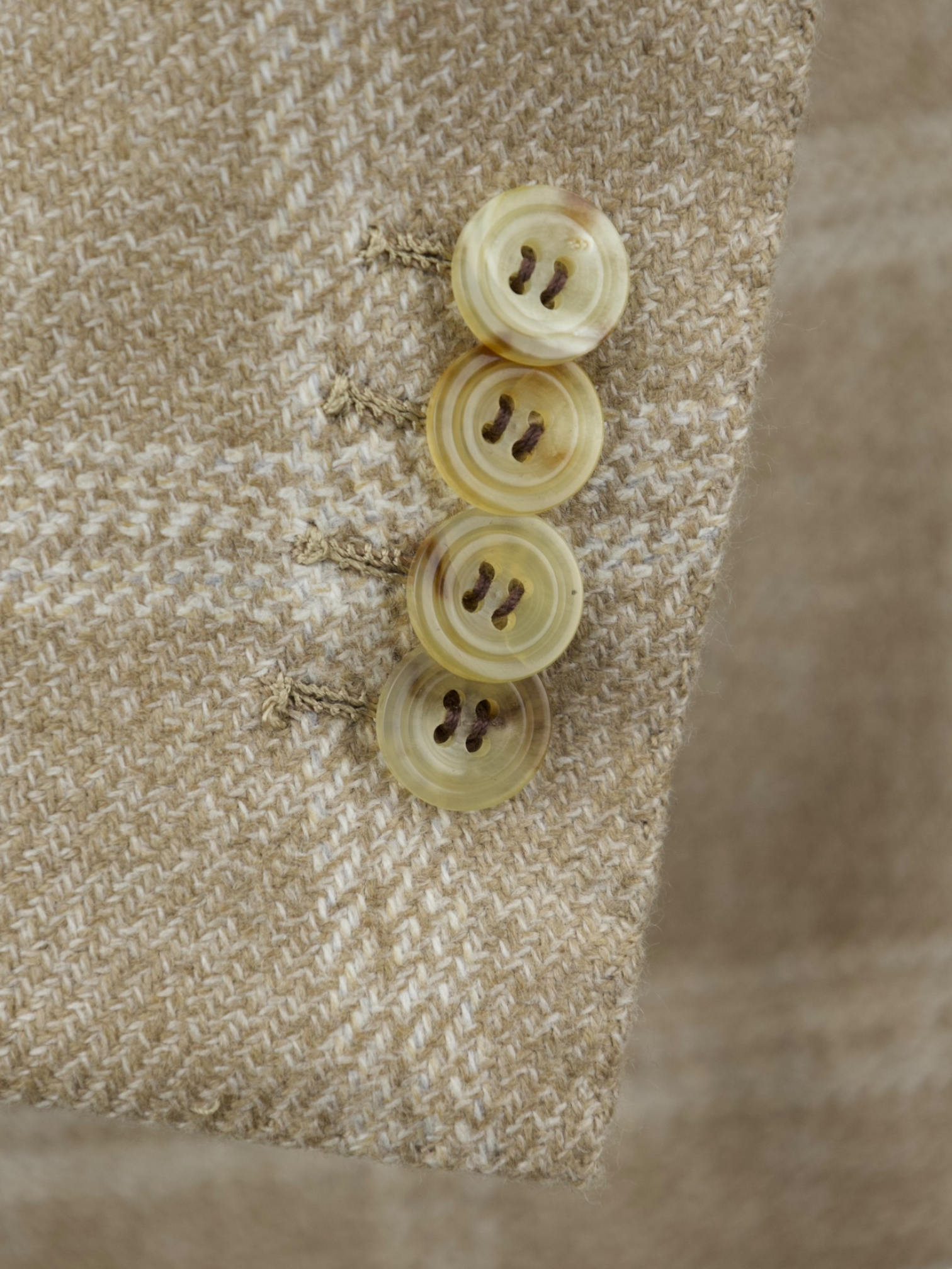 Horn buttons are prized for their quality. They are made with the finest genuine horn material, improving the appearance of the suit. And because they are so strong, you don't have to worry about them cracking or breaking.