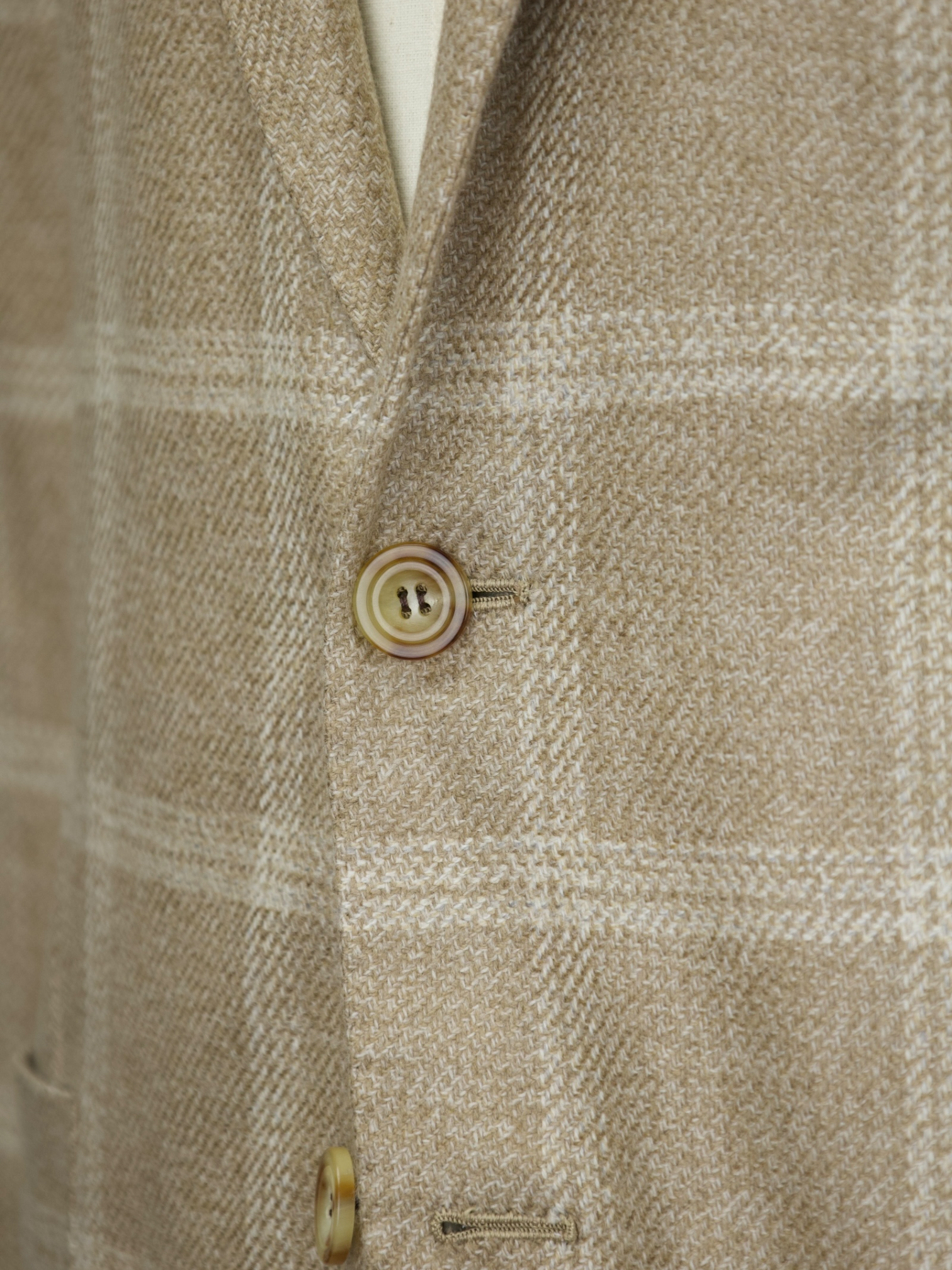 A sartorial jacket - or coat - needs an interlining that will help give it shape and mold it. Canvas gives the item a tailored and crafted look. In short, it breathes life into it. Purely technical, canvas is made from either horsehair, wool, mohair or camel hair. It could also be a mix of them all, with varying thickness and weight. The canvas is stitched to the jacket, often by hand, thus making the canvas pieces 'floating' in the middle of the inner and outer cloth. This gives the jacket added flexibility. The canvas runs from the upper parts, all the way down to the end of the jacket. After you wear your canvassed suit for a while, it will begin to take your shape and look incredibly natural.