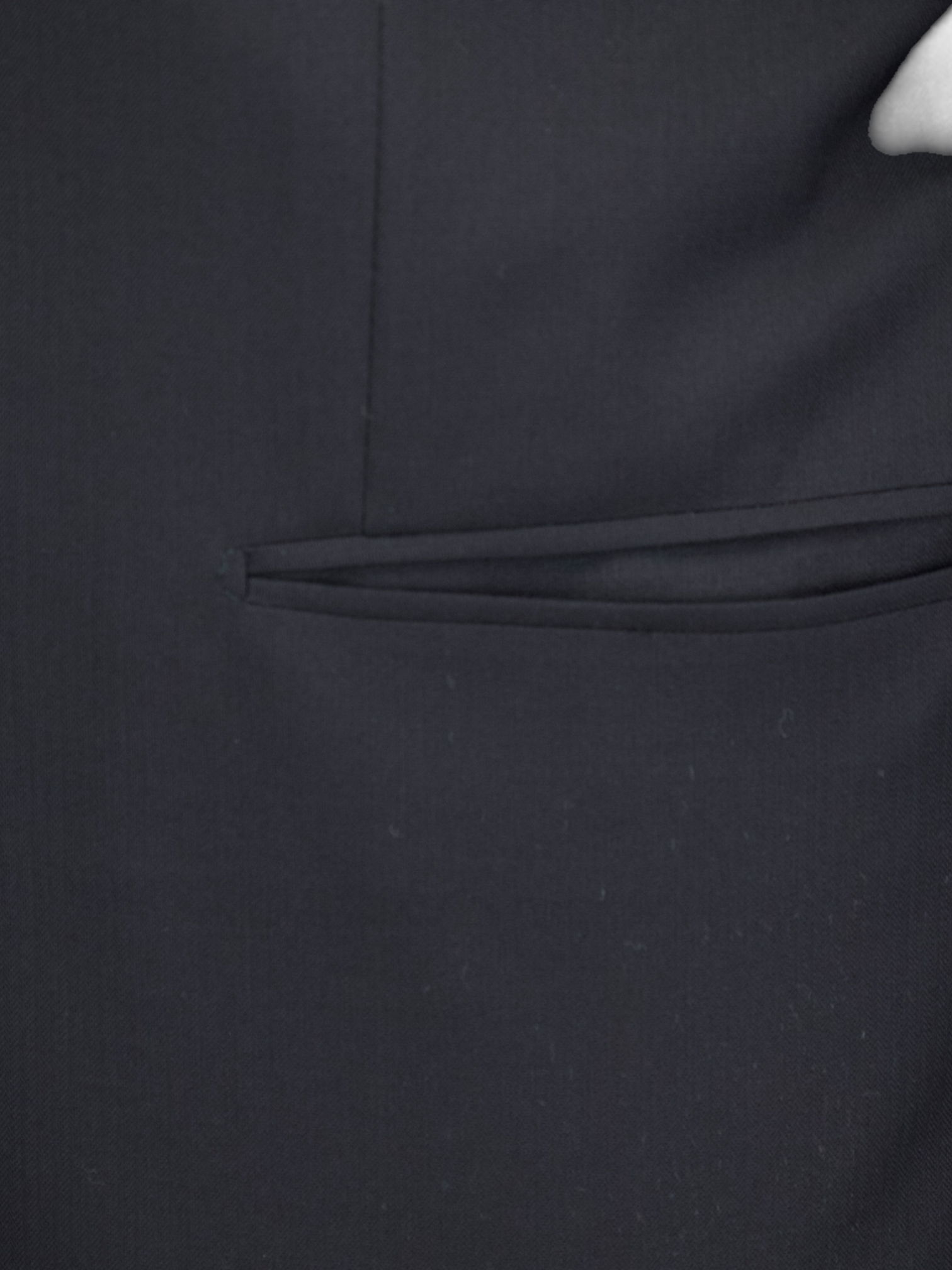 The first jacket pockets were sewn inside the lining or seams of garments, and are called “jetted” pockets. In their simplest form, they consist of little more than a slit. Suits that are the most formal, especially tuxedos, have no flap pockets altogether to give the piece a more streamlined look.
