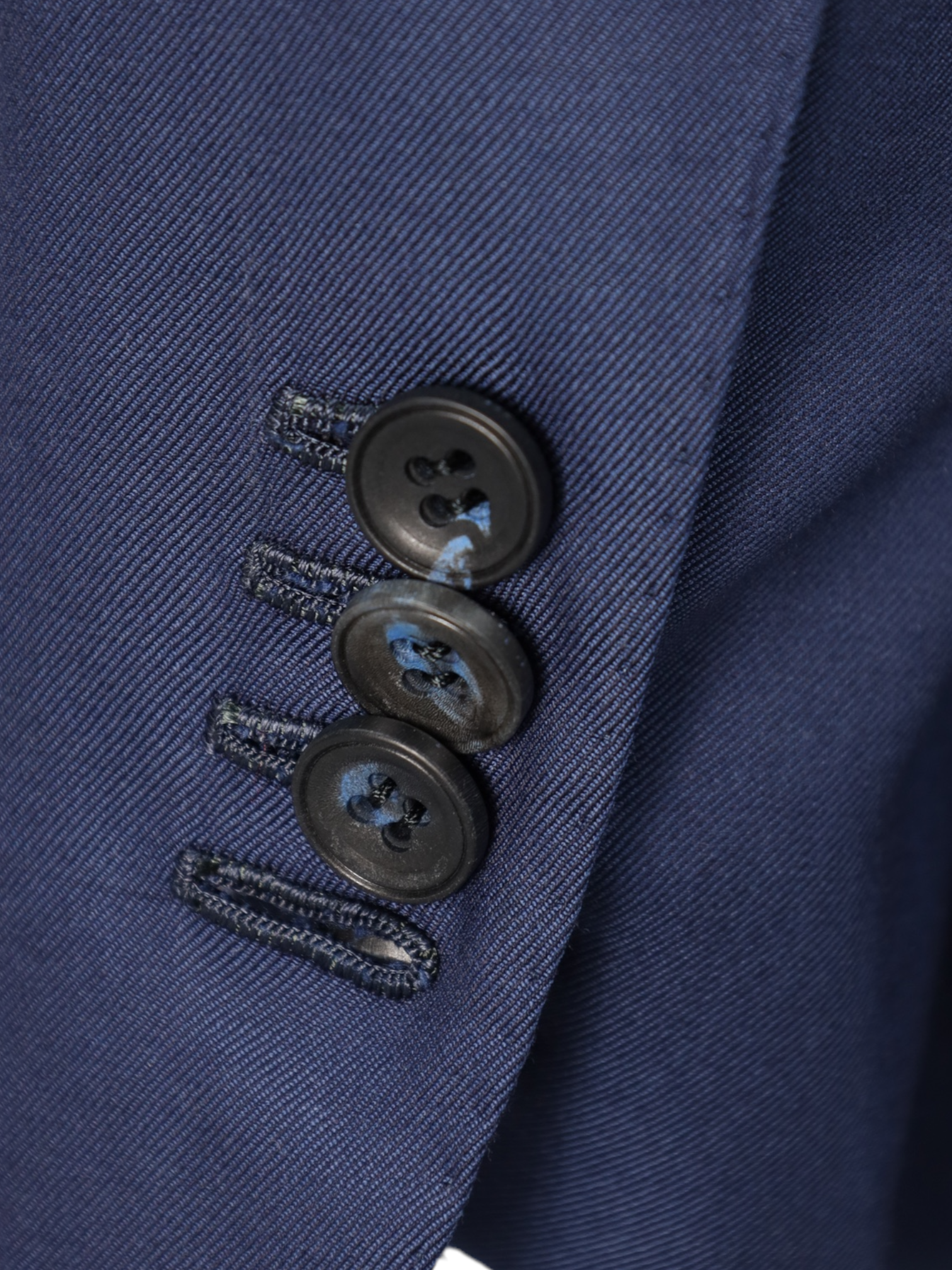 Also known as stacked buttons or waterfall buttons, kissing buttons are associated with Italian tailoring as Italian tailors make their jacket sleeve buttons in the kissing style. In this style, buttons touch each other and overlap one another. Handmade buttonholes; Even this step, apparently the simplest, is treated with an abundance of detail. Attaching the buttons is a job that requires patience and must be completed to perfection.