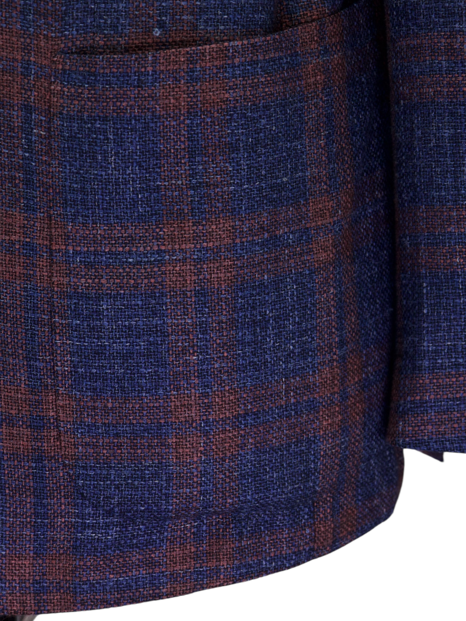 Kiton Blue & Red Cashmere, Silk & Linen Windowpane Jacket