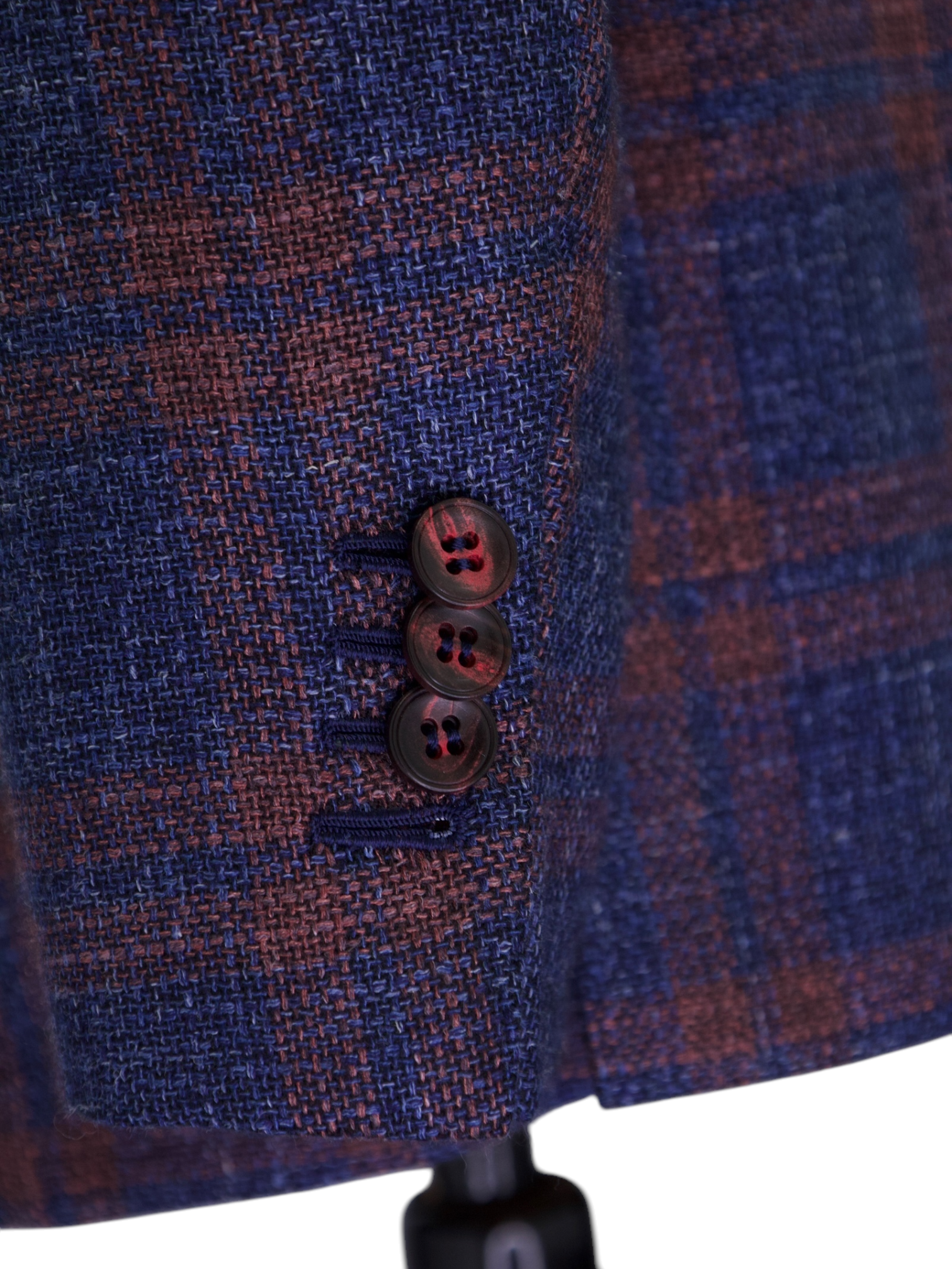 Handmade buttonholes are made using a chain of knotted loops called purl stitches that make them strong and visually distinctive. It takes about five seconds to sew a regular buttonhole with a machine – a single handmade buttonhole takes about 10 minutes to sew.