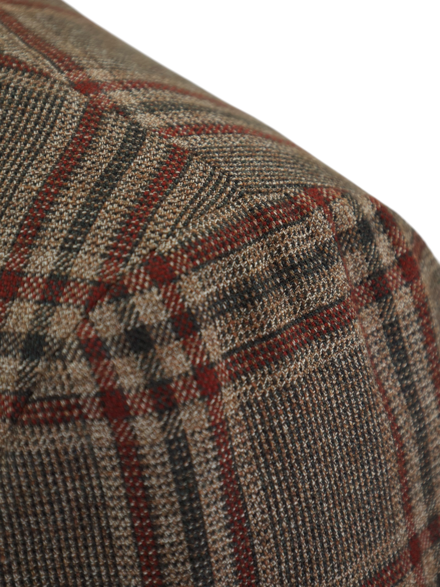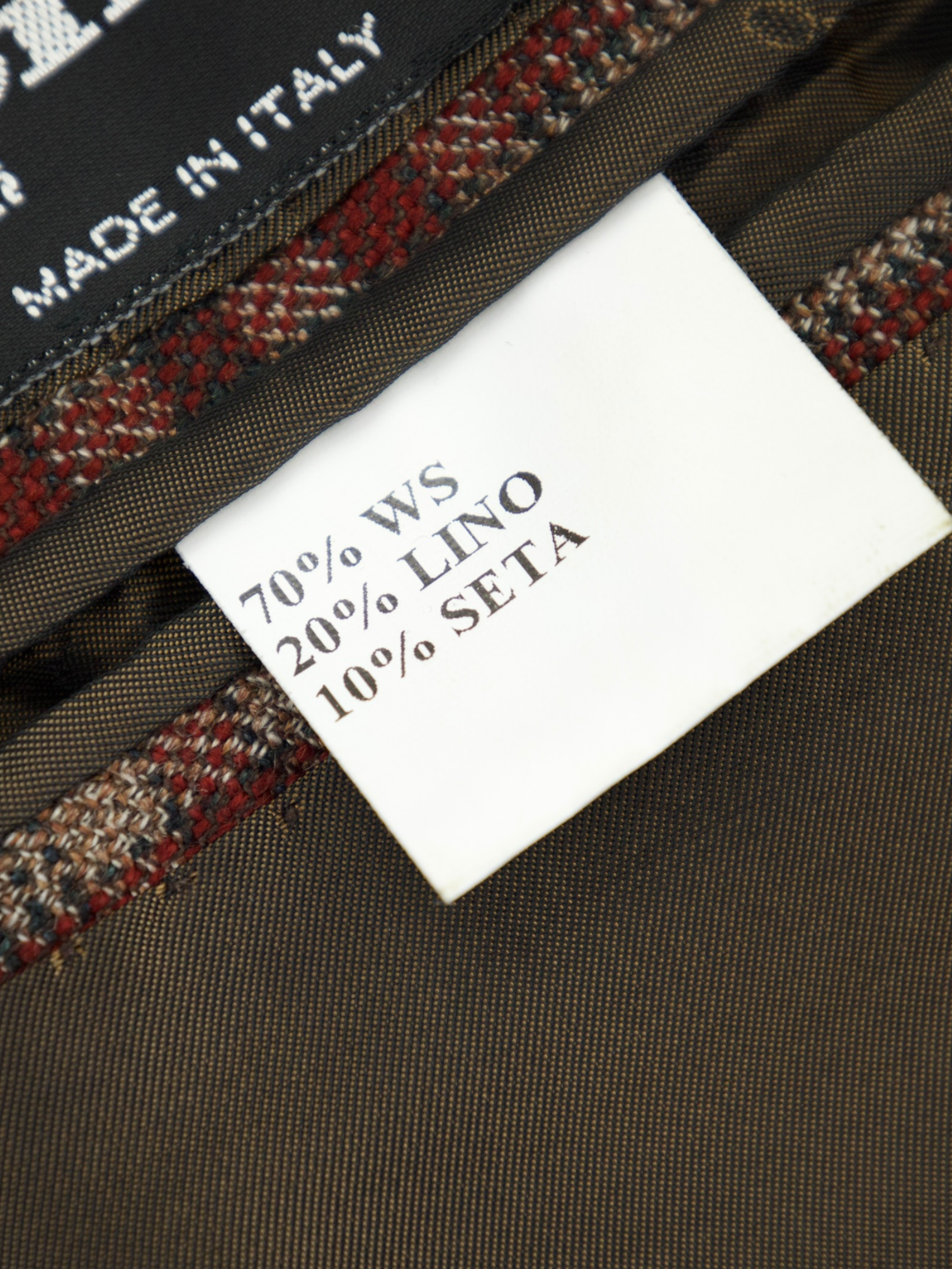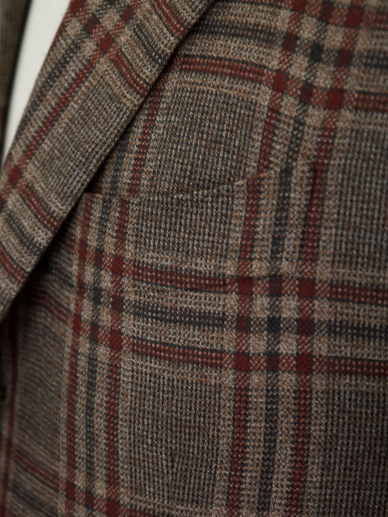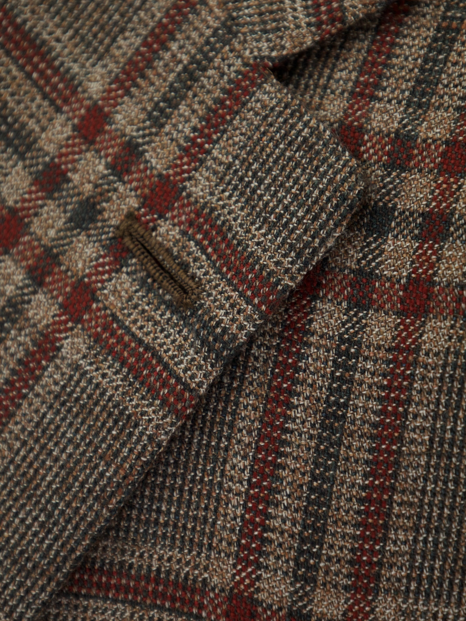 Kiton Brown & Red Cashmere, Linen & Silk Windowpane Jacket