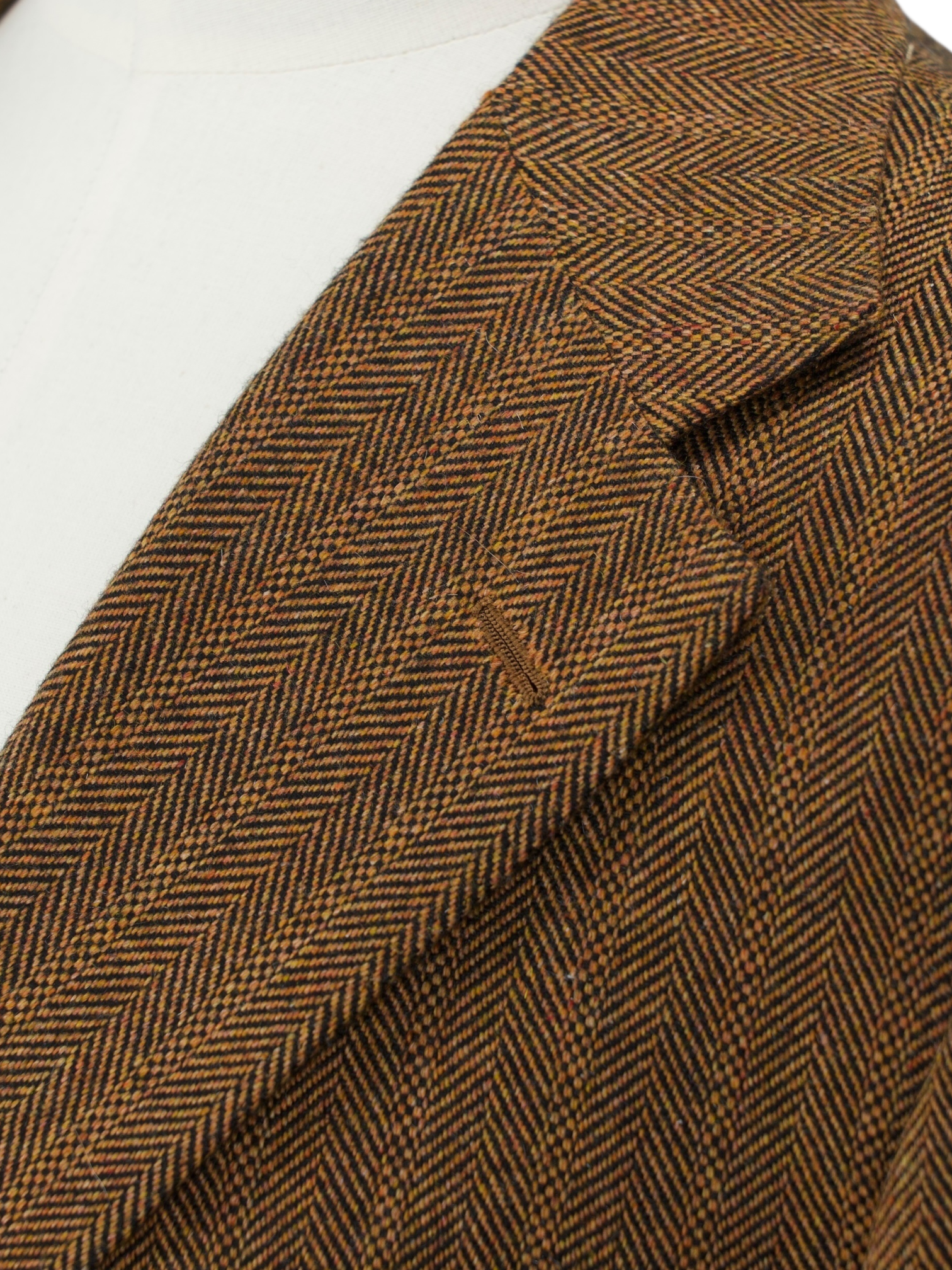 Handmade buttonholes are made using a chain of knotted loops called purl stitches that make them strong and visually distinctive. It takes about five seconds to sew a regular buttonhole with a machine – a single handmade buttonhole takes about 10 minutes to sew.