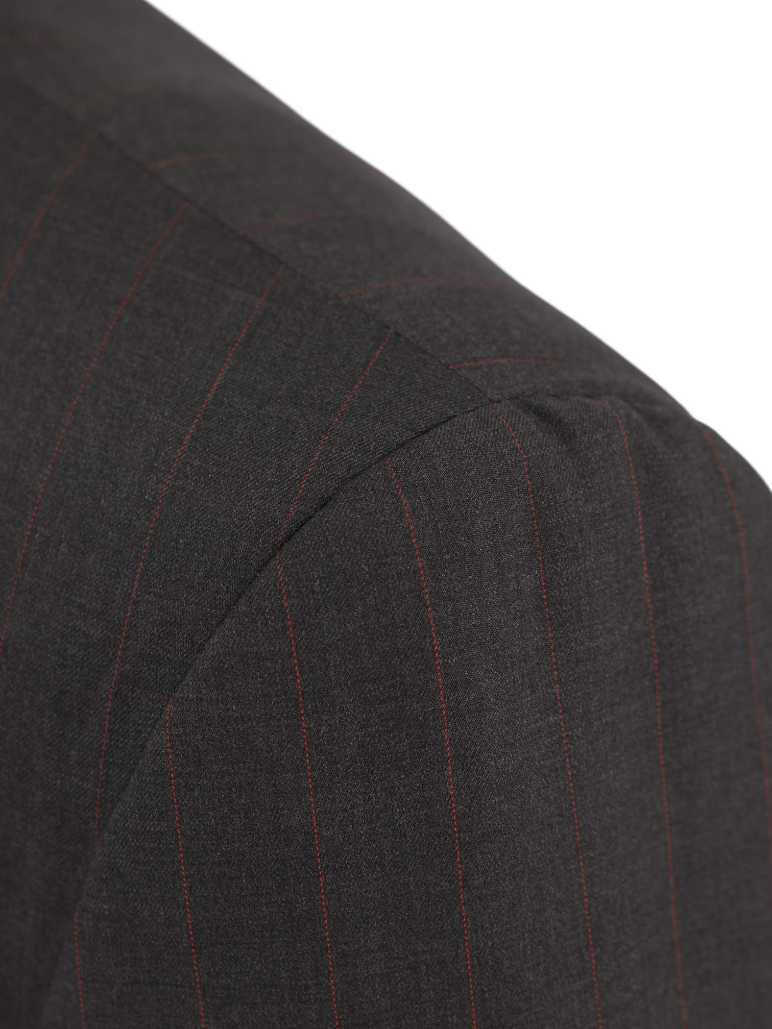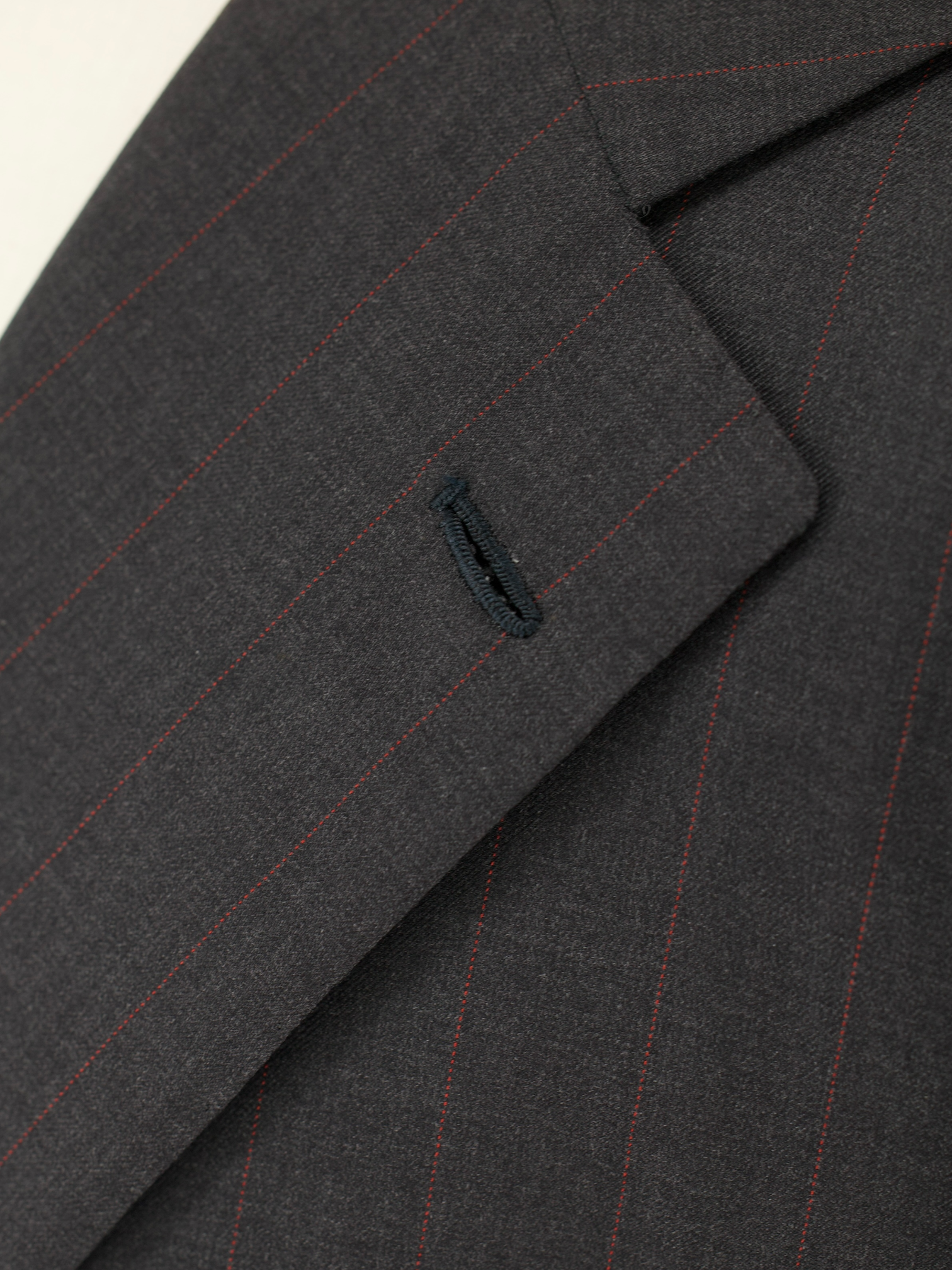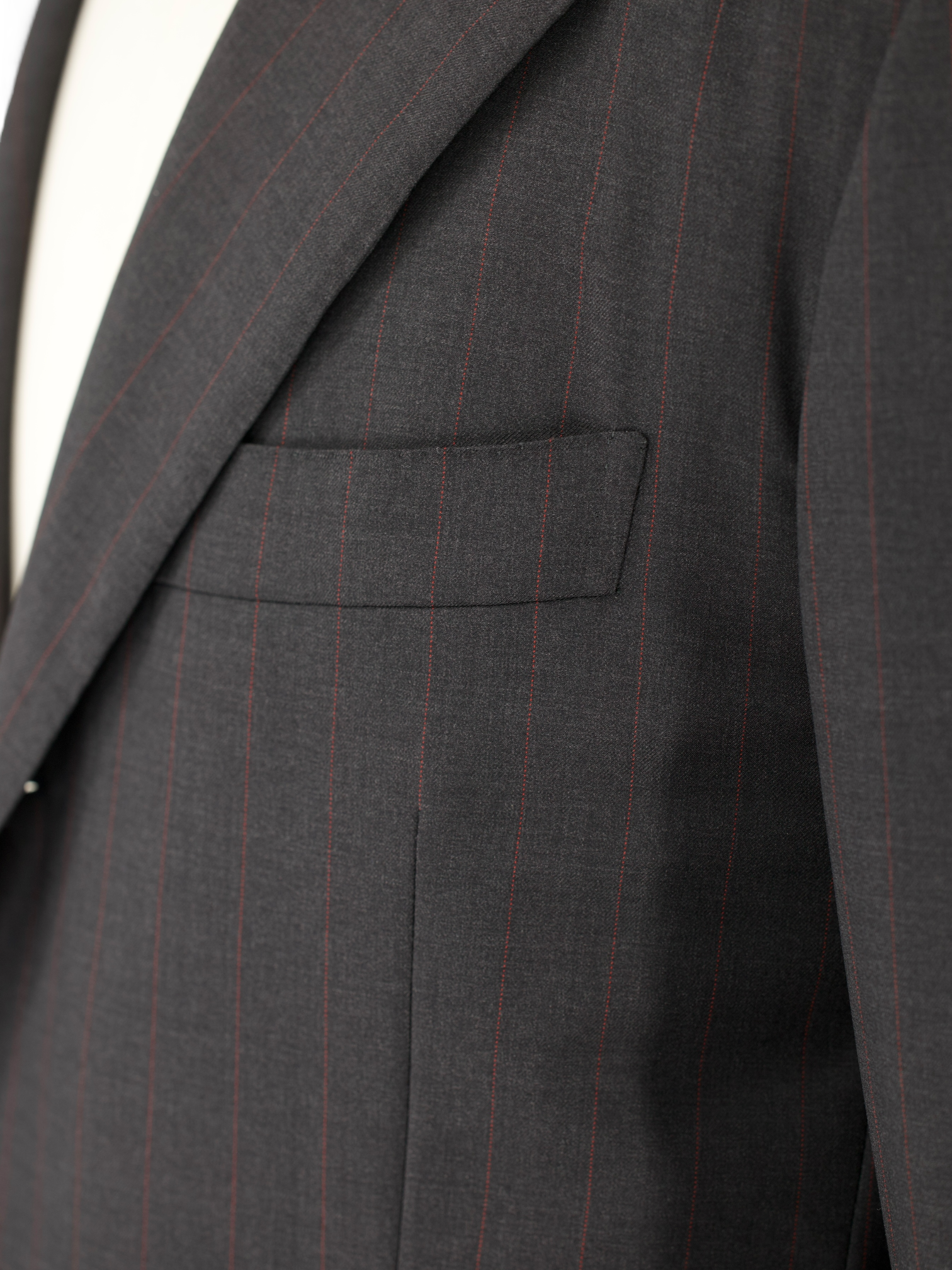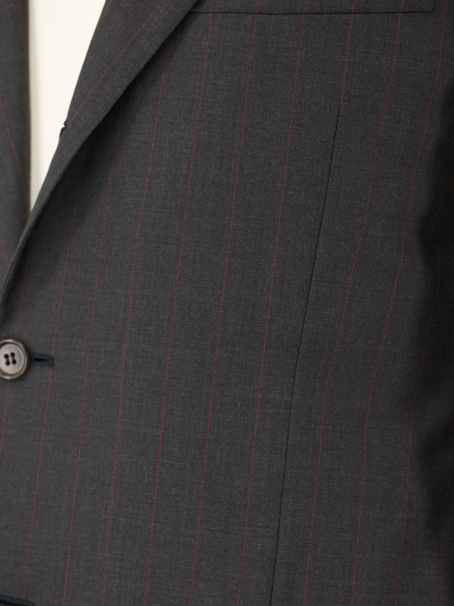 Kiton Charcoal & Red 14-Micron "Blanc Blue" Super 180's Pinstripe Suit