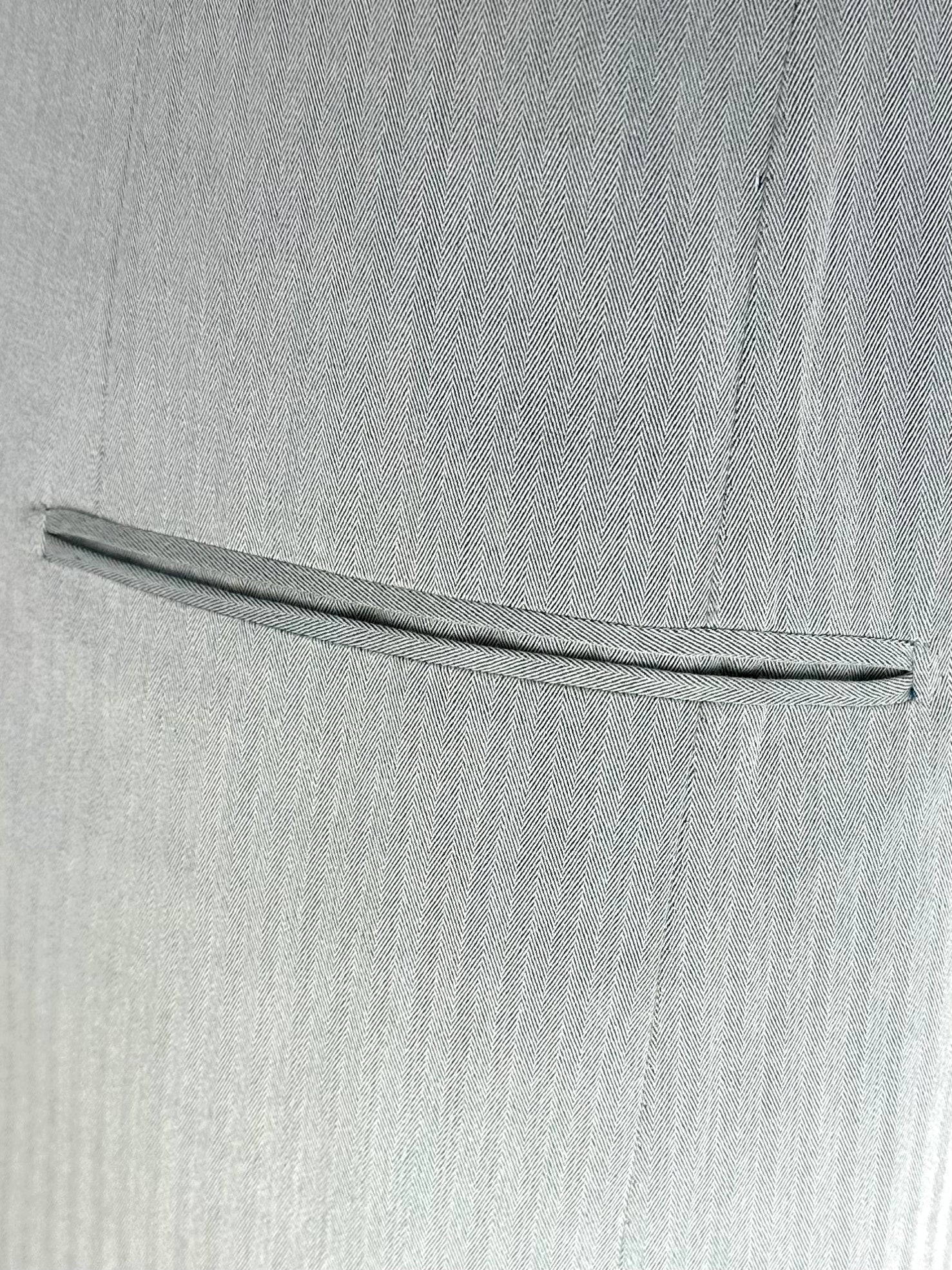 The first jacket pockets were sewn inside the lining or seams of garments, and are called “jetted” pockets. In their simplest form, they consist of little more than a slit. Suits that are the most formal, especially tuxedos, have no flap pockets altogether to give the piece a more streamlined look.